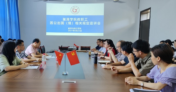 為促進(jìn)數(shù)統(tǒng)學(xué)院教師理解和把握因公出國(境)政策和規(guī)定,增強(qiáng)教師出國(境)學(xué)術(shù)學(xué)習(xí)交流意識,積極踐行“我為師生辦實(shí)事”。6月23日下午,數(shù)統(tǒng)學(xué)院邀請國繼學(xué)院院長史國東、副院長褚春元、外事科副科長榮幸一行三人進(jìn)行現(xiàn)場宣講及答疑活動。數(shù)統(tǒng)學(xué)院副院長吳永生、袁鳳琴及全體教師參加,宣講會由袁鳳琴主持。