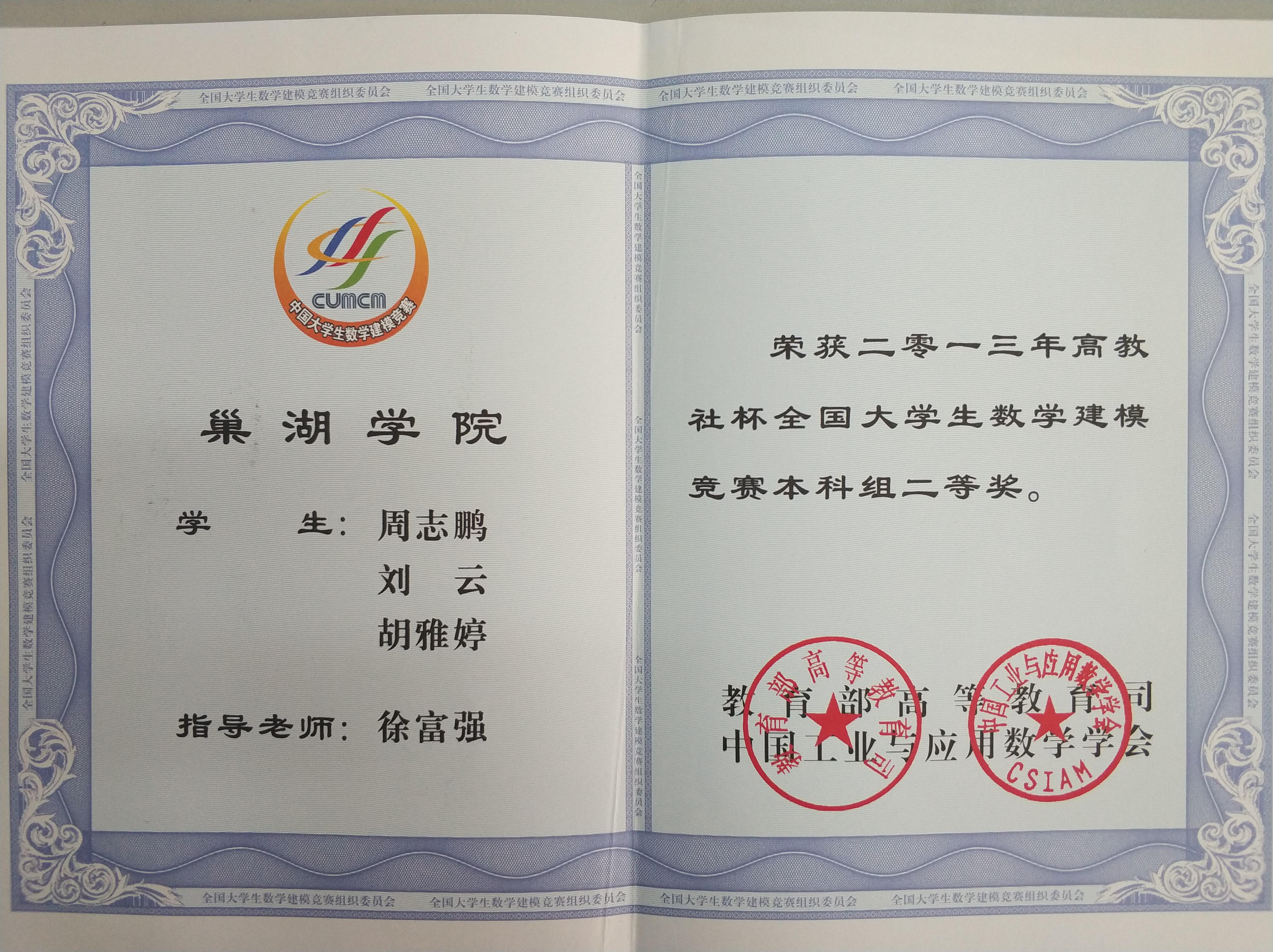 全國大學生數學建模競賽本科組 二等獎