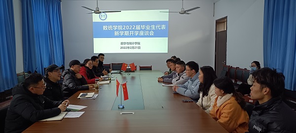 進(jìn)一步推進(jìn)本院2022屆畢業(yè)生畢業(yè)及就業(yè)工作,新學(xué)期開學(xué)第一天,2.21日下午,數(shù)統(tǒng)學(xué)院在院會議室召開2022屆畢業(yè)生代表新學(xué)期開學(xué)座談會。數(shù)統(tǒng)學(xué)院院長趙開斌,副院長吳永生、袁鳳琴,就業(yè)聯(lián)絡(luò)員管成功,畢業(yè)班輔導(dǎo)員何國政、冀祥麟出席,畢業(yè)班代表參加座談,會議由袁鳳琴主持。