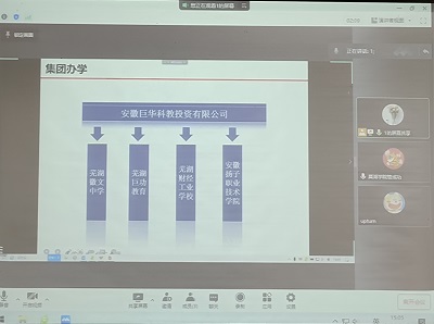 徐翔從集團需求、崗位需求、福利待遇三個方面對公司進行介紹。隨后,徐翔分別對集團下屬的安徽揚子職業技術學院與蕪湖財經工業學校進行介紹,并重點說明了這兩所學校的人才需求、任職資格與應聘方式,同時介紹了蕪湖市的紫云英人才計劃。會議最后,10多名同學通過微信視頻形式進行面試考核,多名同學達成初步簽約意向。
