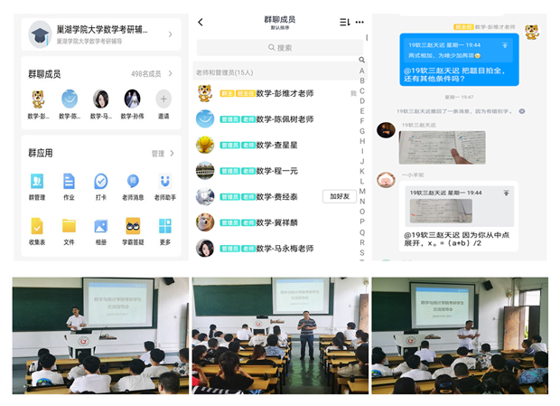 為發(fā)揮學(xué)科優(yōu)勢,積極幫助考研學(xué)子順利上岸,數(shù)統(tǒng)學(xué)院黨員教師為巢湖學(xué)院相關(guān)專業(yè)考研學(xué)生線上輔導(dǎo)大學(xué)數(shù)學(xué)科目,通過線上建群“巢湖學(xué)院考研輔導(dǎo)大學(xué)數(shù)學(xué)輔導(dǎo)群”,為學(xué)生答疑解惑,效果頗豐,目前500人群已滿,正在開設(shè)第二個群。為進(jìn)一步做好2019級學(xué)生考研工作,數(shù)統(tǒng)學(xué)院于6月29日上午明德樓西二教室召開了2019級學(xué)生考研指導(dǎo)交流會,積極營造濃厚的考研學(xué)習(xí)氛圍,幫助學(xué)生解決考研中遇到的各類困難,努力為考研學(xué)生保駕護(hù)航。