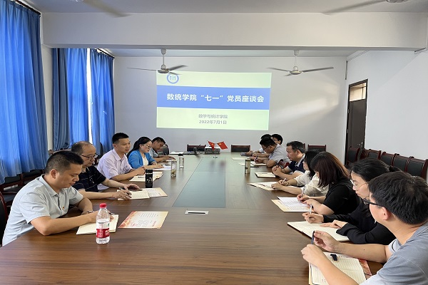 為更好地發(fā)揮黨員先鋒模范作用,促進(jìn)2022年的年度目標(biāo)順利完成,數(shù)統(tǒng)學(xué)院于7月1日中午在明德樓會議室召開黨員代表座談會,會議由副院長謝如龍主持,各教研室黨員代表參加。