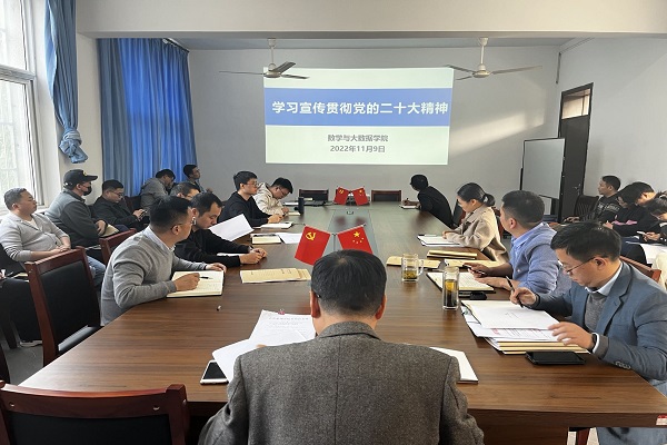 為深入學習宣傳貫徹黨的二十大精神,數學與大數據學院于11月9日下午在院會議室召開全體教師會議,集體開展黨的二十大精神學習。會議由分黨委書記史國東主持會議,全體教師參與了本次學習。