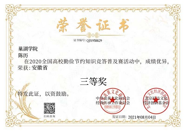 學習與娛樂兩者看似毫不相干,卻又相輔相成,二者缺一不可,而想要發揮出它的作用,就需要使用者對它進行合理的分配,這樣才能進步和提升。在這兩者之間陳歷學長有著他的見解,高中跟大學的區別在于大學的課程較少,平均一天下來只有半天的課程,半天的空閑時間,而陳歷則是合理的利用了這半天的時間,做自己的事情,如果當天的課都能聽懂,那么他就會少花點時間整理筆記,因為知識不在于筆記而在于理解。如果聽得不太懂他可能就會多花點時間整理筆記和請教同學與老師了,剩余的時間他就會去參加別的比賽或者活動,以豐富閱歷。在周六周日這樣的全天沒課的話,他就會多睡一會,補充一下睡眠,其次,因為疫情不能外出,那么他就會選擇去圖書館,練習有關數學方面的軟件,比如matlab、spass之類的軟件,熟悉它們的操作,為后面的數學實驗做準備。陳歷學長在來到巢湖學院的兩年內獲得了許多獎項與證書,他認為在大學中,學習首先是第一位的,但是學習它不是大學生涯的全部,大學更重要的是自身能力的培養,參加各類活動、比賽,可以鍛煉自己的溝通與協調的能力,增強自己綜合素質。