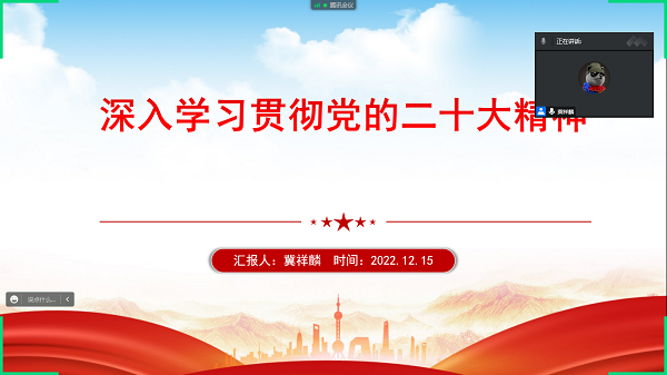 12月15日中午,數學與大數據學院團委副書記冀祥麟通過線上進行黨的二十大精神宣講,數學與大數據學院團委主要團干部參與,會議由冀祥麟主持。
