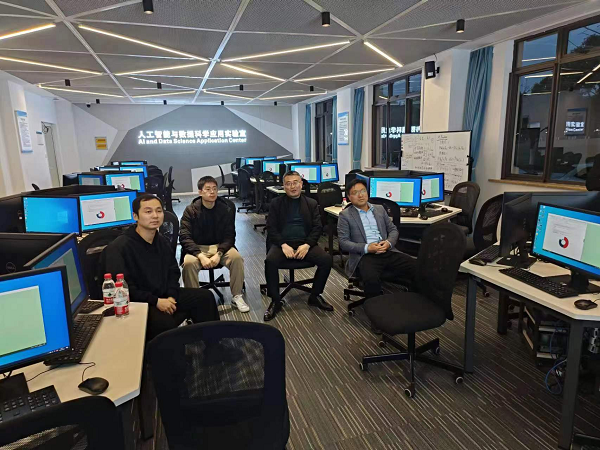 為進一步加強數學與大數據學院實驗室建設,3月24日數學與大數據學院副院長陳佩樹、實驗室主任芮招彪以及統計學教研室主任嚴恒普一行三人赴上海外國語大學國際工商管理學院人工智能與數據科學應用實驗室就實驗室建設、實習實訓平臺建設等工作進行調研學習。