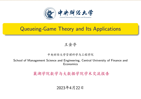 2023年4月22日下午,應巢湖學院數學與大數據學院邀請,中央財經大學王金亭教授在篤行樓會議室203作學術報告。會議由學院副院長彭維才教授主持,部分青年教師、學生參加了本次活動。