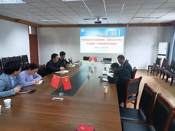 2023年4月22日,巢湖學(xué)院數(shù)學(xué)與大數(shù)據(jù)學(xué)院邀請安徽工業(yè)大學(xué)教授汪忠志、中央財經(jīng)大學(xué)教授王金亭一行來我院指導(dǎo)數(shù)學(xué)與應(yīng)用數(shù)學(xué)、大數(shù)據(jù)管理與應(yīng)用專業(yè)特色凝練工作。會議由副院長彭維才教授主持,負責(zé)專業(yè)認證部分教師代表參加了本次活動。