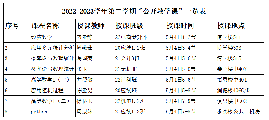 數學與大數據學院2022-2023學年第二學期“公開教學課”一覽表