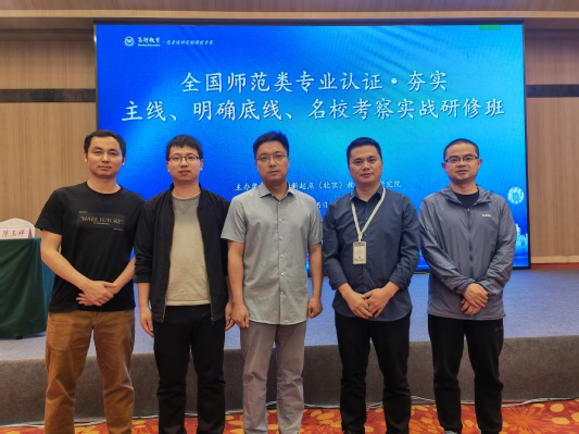 為更加全面、準確地理解師范類專業指標內涵,把握認證要點,厘清認證重點、難點,扎實推進我院師范類專業認證工作,數學與大數據學院于2023年5月12日下午至14日組織副院長陳佩樹,副院長彭維才,數學系主任徐富強,以及骨干教師芮招彪、程一元5人在南京參加了為期兩天的“全國師范類專業認證·夯實主線、明確底線、名校考察實戰研修班”。