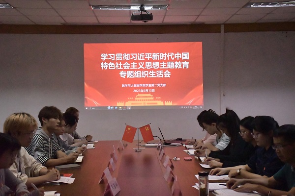 9月13日下午,數學與大數據學院學生第二黨支部在篤行樓203會議室召開學習貫徹習近平新時代中國特色社會主義思想主題教育專題組織生活會,會議由支部書記謝乙瑩主持,學院黨委書記史國東到會指導,支部全體黨員參加會議。
