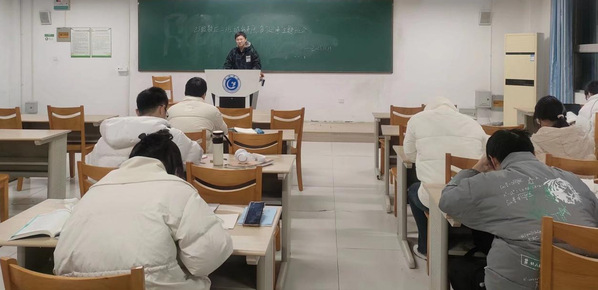 另外,23級大數據管理與應用班級邀請學院黨委副書記郝江鋒出席指導班會。郝江鋒要求大家要認真復習、科學備考;端正態度,從容應考。并進一步對近期考試安排、緩考辦理要求、學業要求等相關事宜進行了解釋說明,要求同學們嚴肅考試紀律,端正學風。