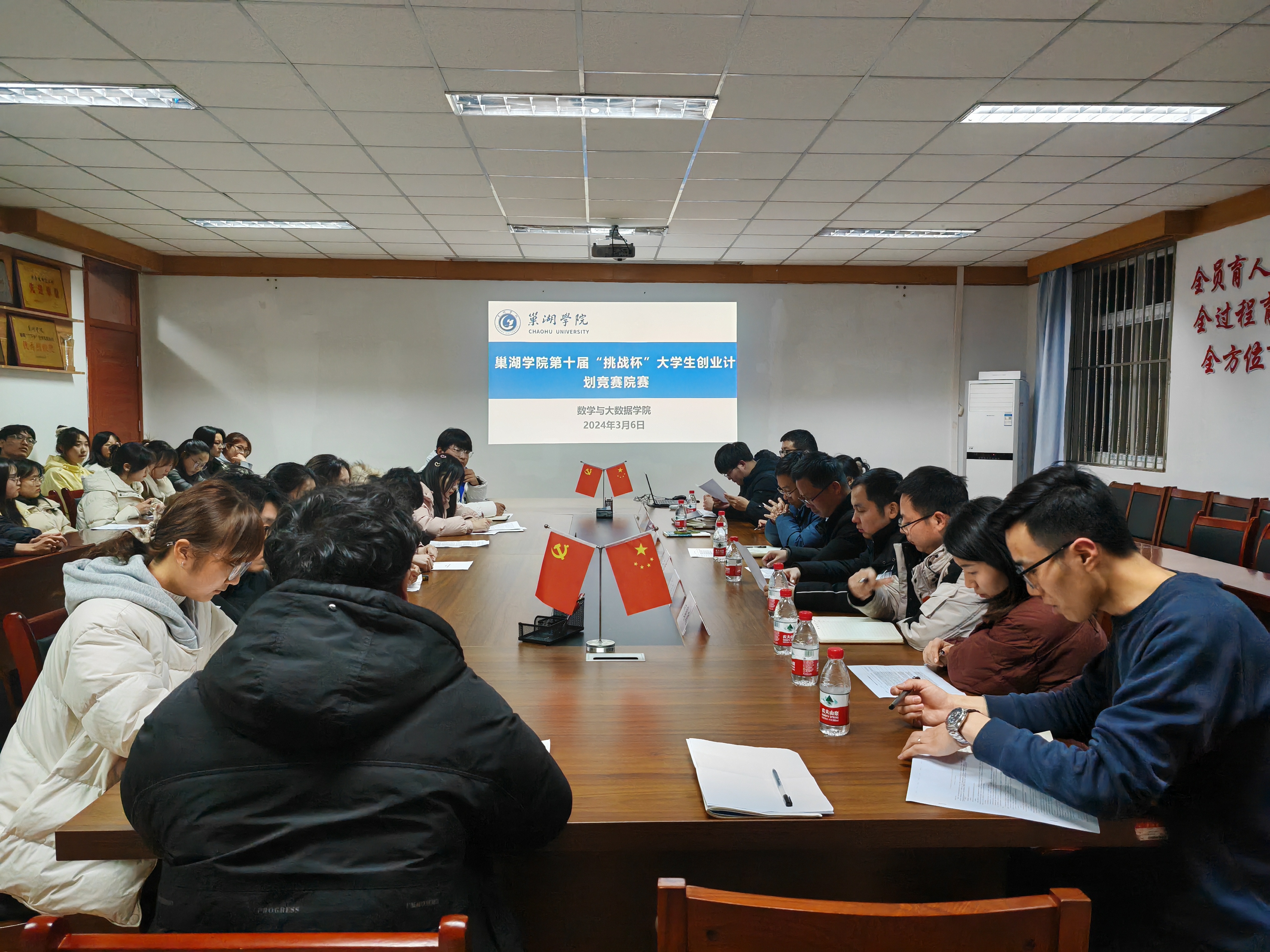 為深入學習宣傳貫徹黨的二十大精神,落實國家“雙創”工作部署,支持助力大學生創新創業,提高創新、創意、創造、創業的意識和能力,扎實做好巢湖學院第十屆“挑戰杯”大學生創業計劃競賽推報工作。3月6日晚,數學與大數據學院在篤行樓203會議室舉辦巢湖學院第十屆“挑戰杯”大學生創業計劃競賽院級選拔賽。數學與大數據學院黨委副書記郝江鋒、統計與大數據管理系副主任吳云標以及各評委老師參會,會議由院團委副書記冀祥麟主持。