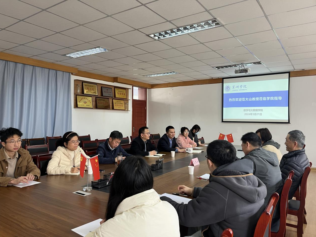 2024年3月21日上午,應巢湖學院數學與大數據學院邀請,國際知名調和分析專家,美國威斯康辛大學密爾沃基分校范大山教授在篤行樓會議室203作了題為“Transference on Lorentz Spaces”的數學前沿學術報告。報告由數學學院副院長彭維才教授主持,人事處處長謝如龍教授、部分教師與學生代表參加了此次活動。