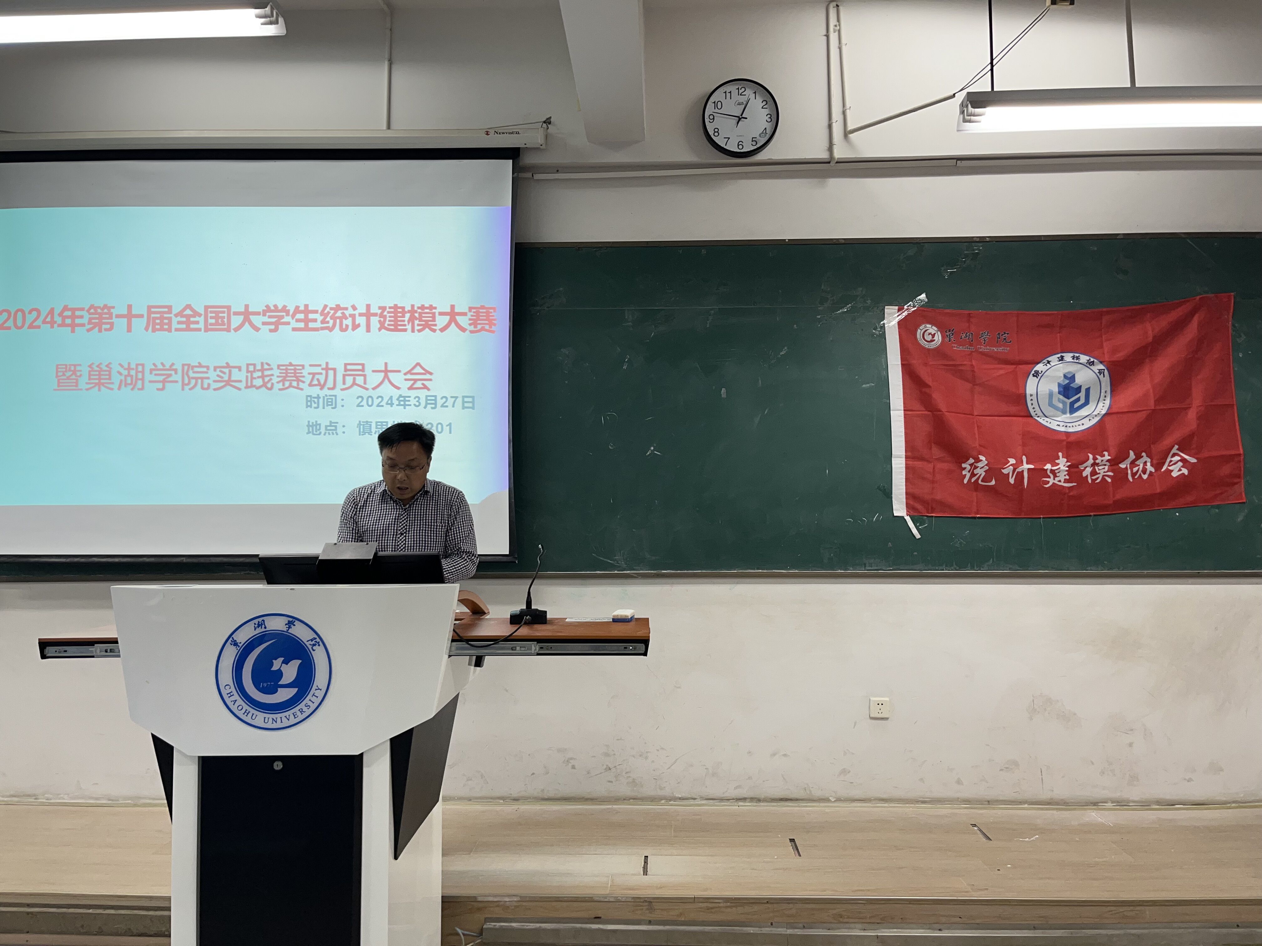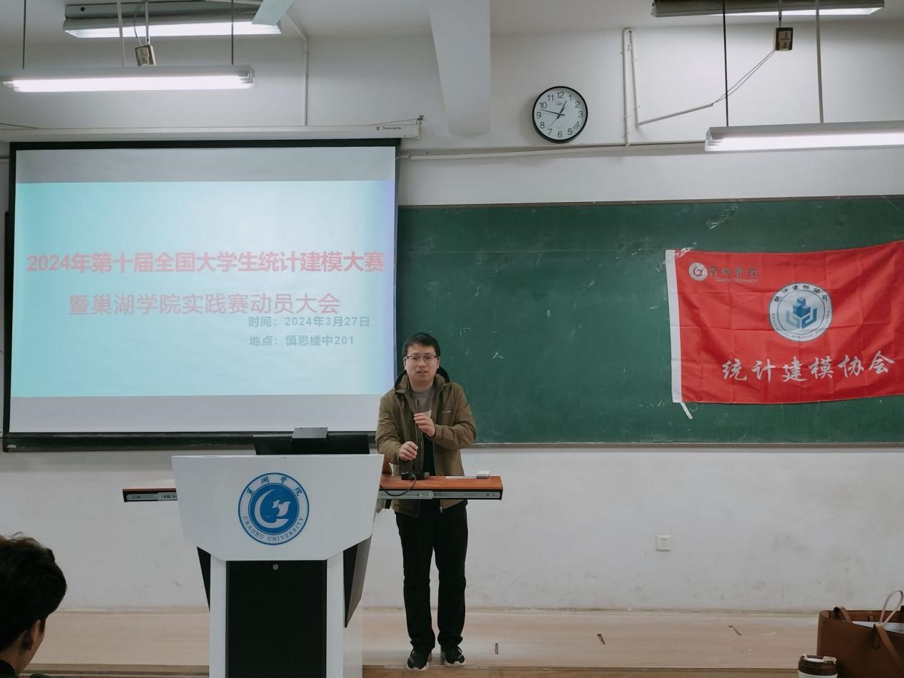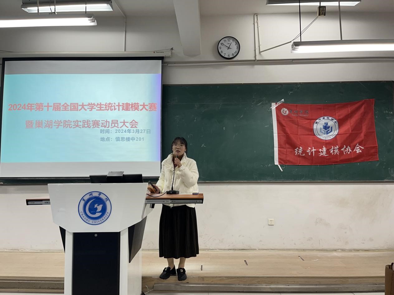 為了使同學們更加了解統計建模大賽,提升同學們參加統計建模大賽的興趣和積極性,培養參賽選手的競賽能力,統計建模協會于3月27日中午12:40在慎思樓中203召開2024年全國大學生統計建模大賽賽前動員會。數學與大數據學院副院長陳佩樹教授、統計建模競賽負責人陳亞男老師及130多名參賽學生參加,會議由統計建模協會指導老師程一元主持。
