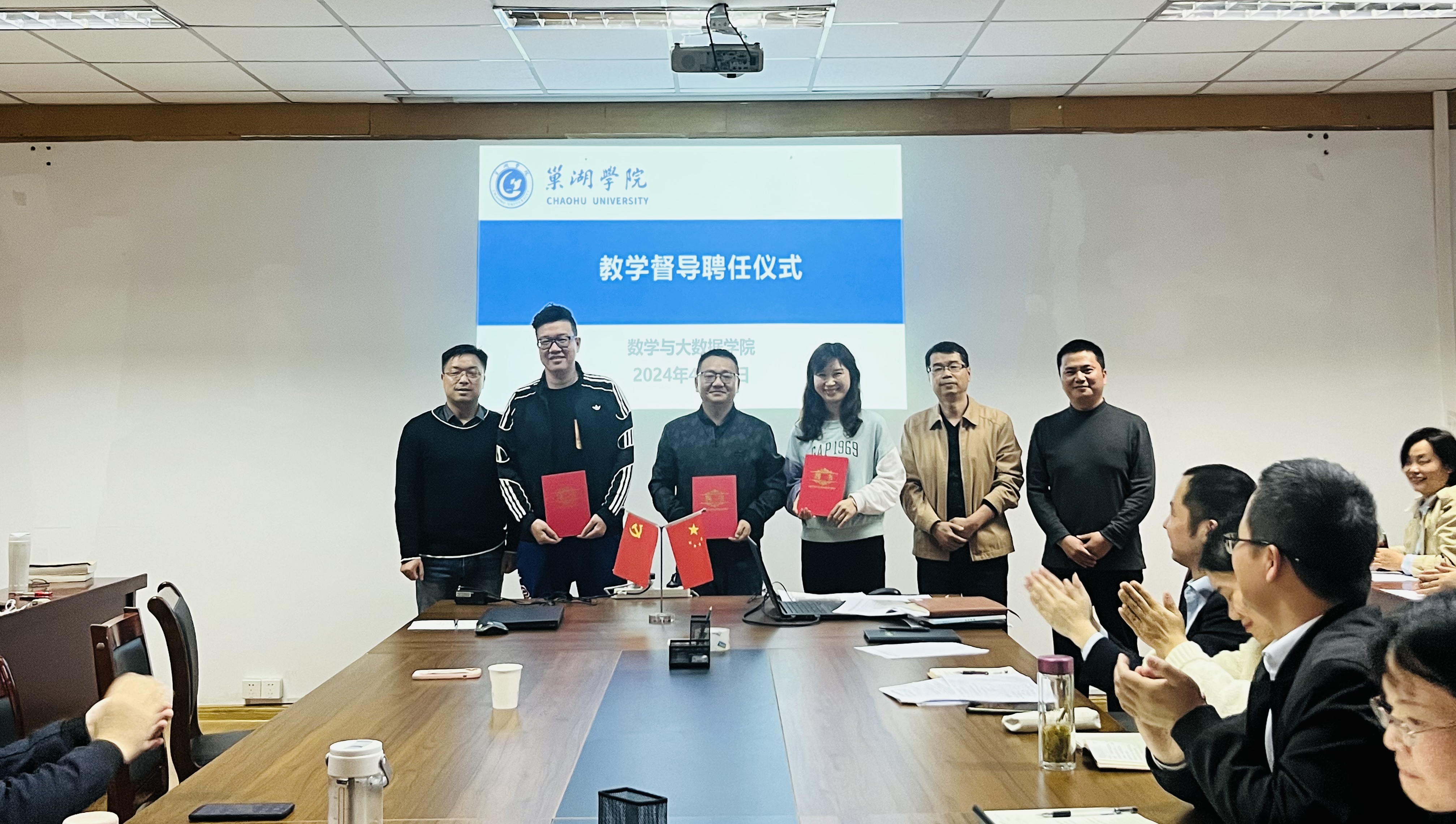 儀式上,彭維才宣讀了學校《關于聘任巢湖學院第五屆校院兩級教學督導的通知》并對瞿萌、陳淼超、王淑超三位教師表示祝賀。隨后在講話中充分肯定了教學督導為學院教育教學水平的提高所做出的貢獻,希望新一屆教學督導能時刻關注學校與學院教育教學工作動態,在學院教風學風建設、教學改革創新等方面加大督導力度,切實履行教學督導職責。