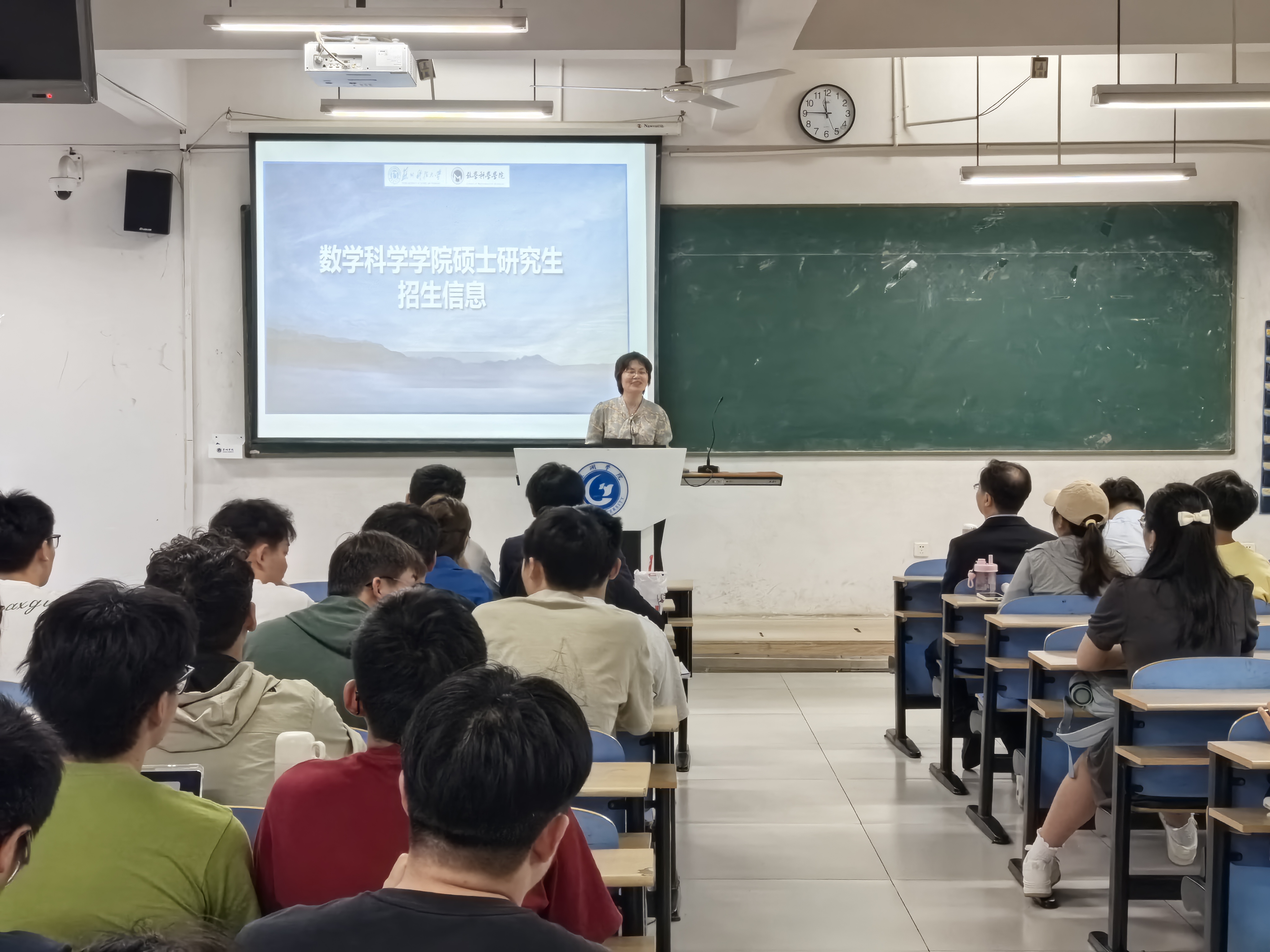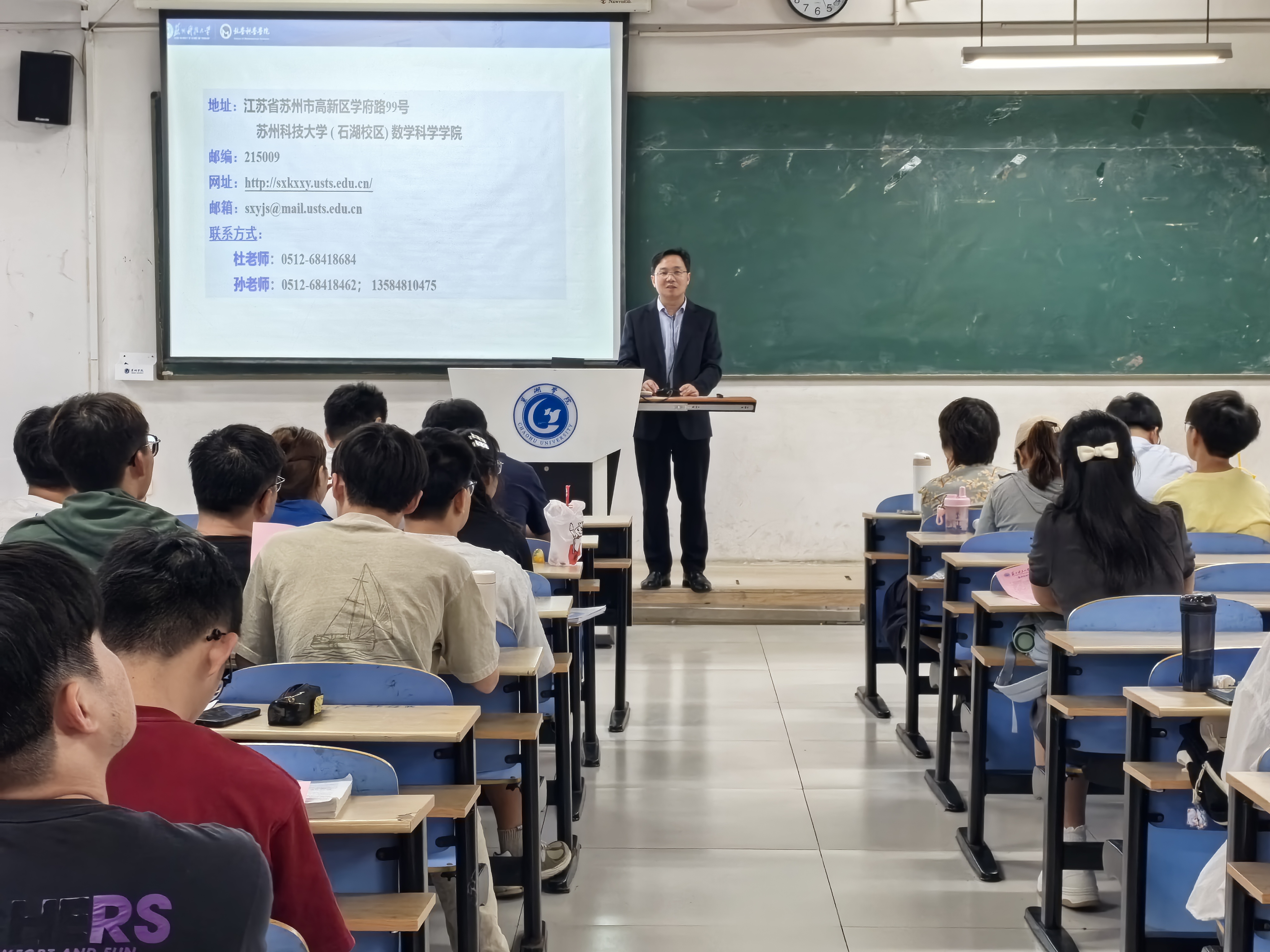 孫桂榮從該校的發(fā)展歷史、科學研究、師資力量、學生就業(yè)、校園生活及人才培養(yǎng)等方面介紹了學校概況,并重點就學院所含碩士點的相關情況進行了詳細介紹。宣講現(xiàn)場,蘇州科技大學數(shù)學科學學院一行與同學們進行了互動,耐心回答了同學們所關注的招生規(guī)模、復試方法、特色培養(yǎng)等方面的問題。