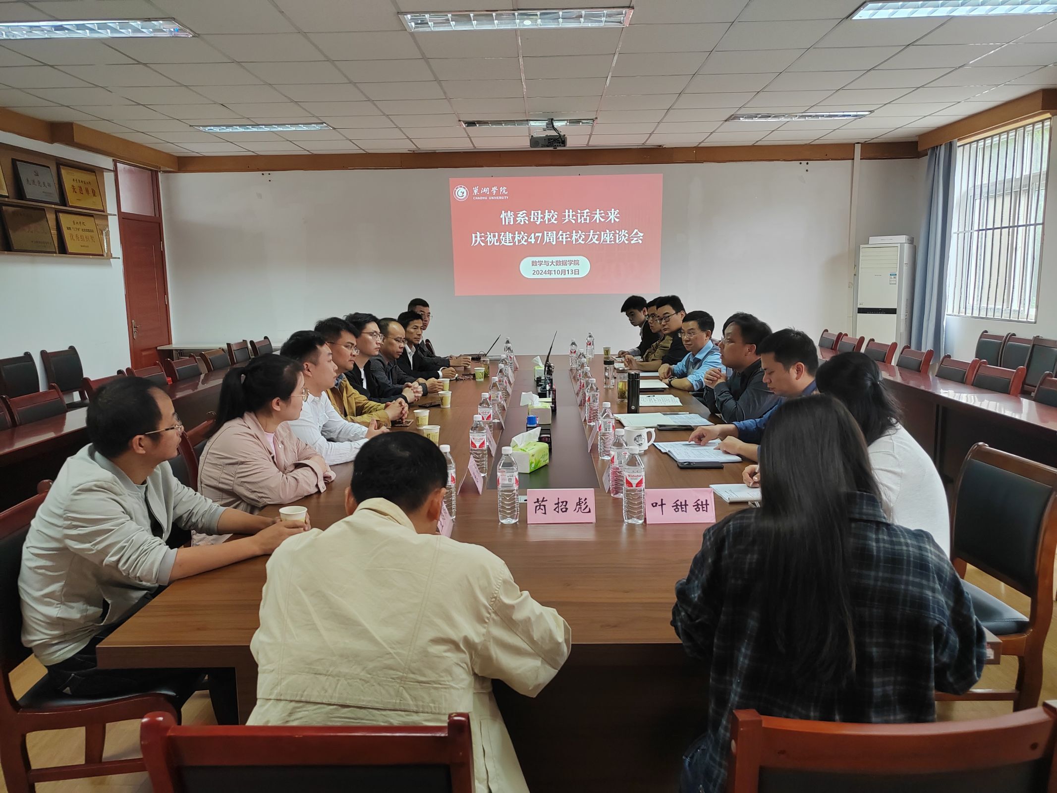 在建校47周年之際,為共慶母校華誕,共謀未來發展,共話校友情誼,數學與大數據學院于10月13日上午在篤行樓會議室召開慶祝建校47周年校友座談會。學院全體黨政班子成員、部分教師代表及優秀校友參會。會議由學院黨委副書記(主持工作)陳小波主持。
