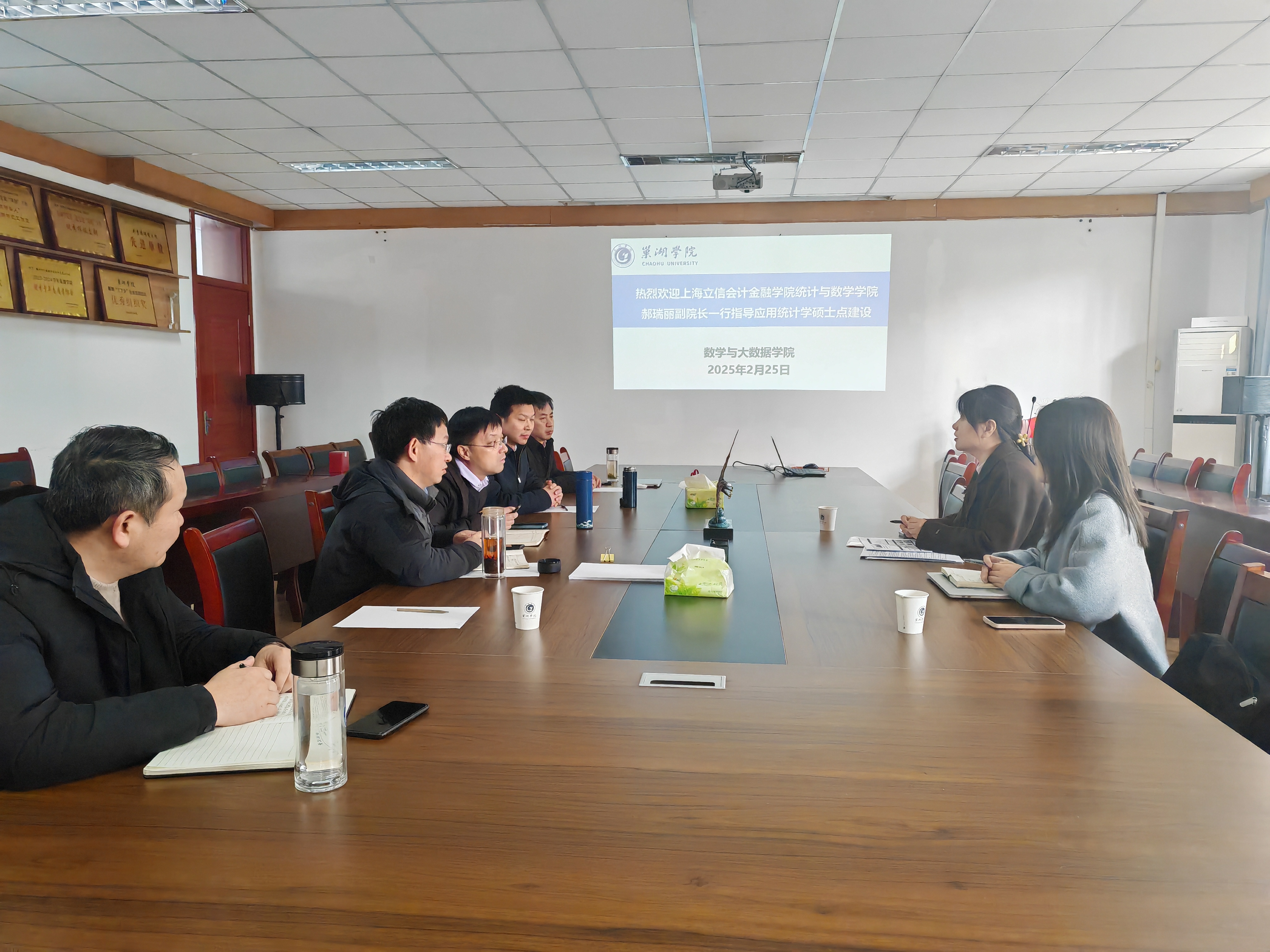 為提升應用統計專業碩士學位點建設質量,助力統計學學科高質量發展,2月25日,上海立信會計金融學院統計與數學學院郝瑞麗副院長一行到數學與大數據學院指導應用統計學碩士點建設工作。巢湖學院人事處處長謝如龍、教務處副處長彭維才、數學與大數據學院副院長(主持工作)陳佩樹、副書記郝江鋒及部分骨干教師參加了交流會。會議由陳佩樹主持。