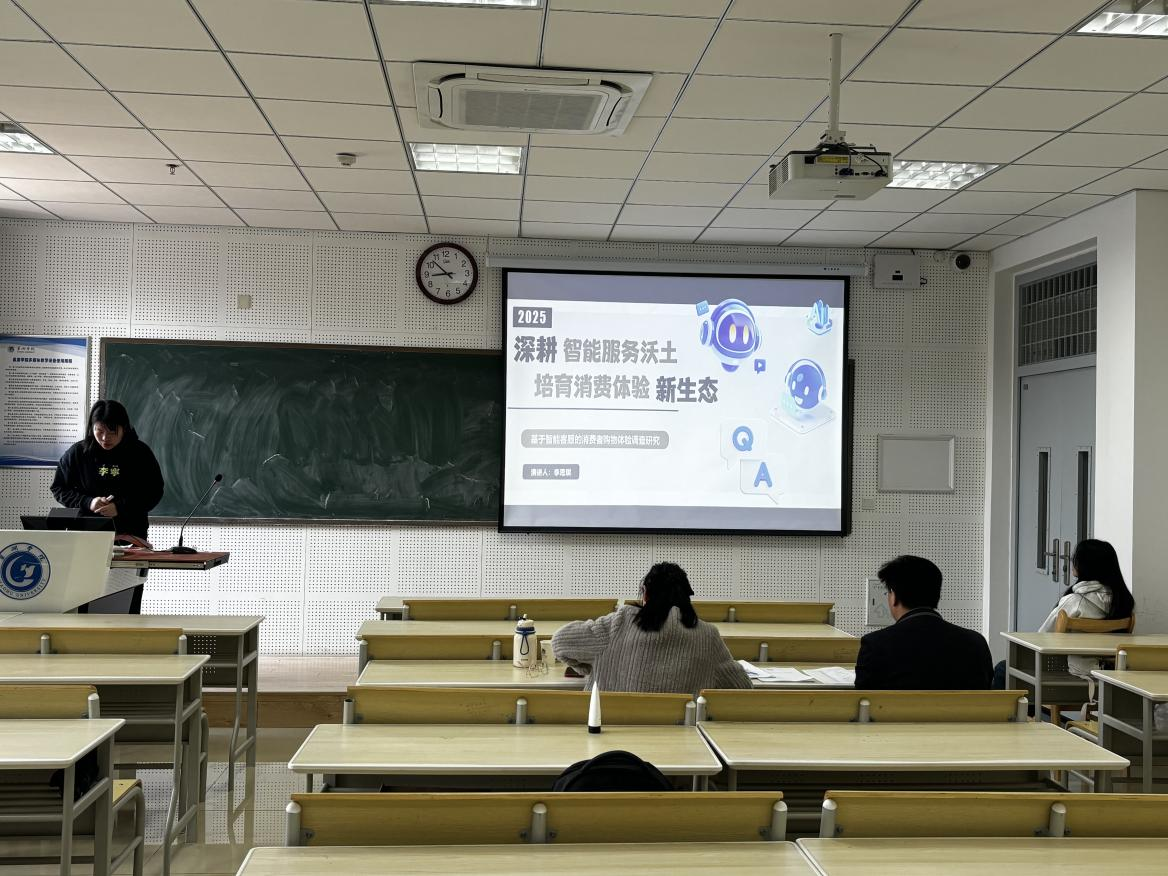 上午8:30,50余支代表隊分為兩組,分別于崇學樓中302、中303進行比賽。學生代表團隊依次以PPT形式展示他們的市場調查分析報告并進行現場答辯。最終根據分組賽得分,舉薦前13組進入全國大學生市場調查分析大賽安徽省分賽區實踐賽。比賽開始前,陳佩樹就大賽的關鍵要點和數據分析方法分享了獨到心得,著重指出同學們要精準把握目標受眾特征,合理設置問卷題目,確保收集的數據真實有效。同時,也要熟練運用數據分析軟件,挖掘數據背后的潛在信息,通過科學嚴謹的分析得出可靠結論。此外,陳佩樹還著重強調,調查樣本的選取一定要具備代表性和廣泛性,不能以偏概全,只有這樣才能讓調查結果更具說服力,切實反映市場實際情況 ,助力大家在比賽中取得優異成績。本次大賽秉承公平、公正、公開的原則,并以匿名方式進行評審。