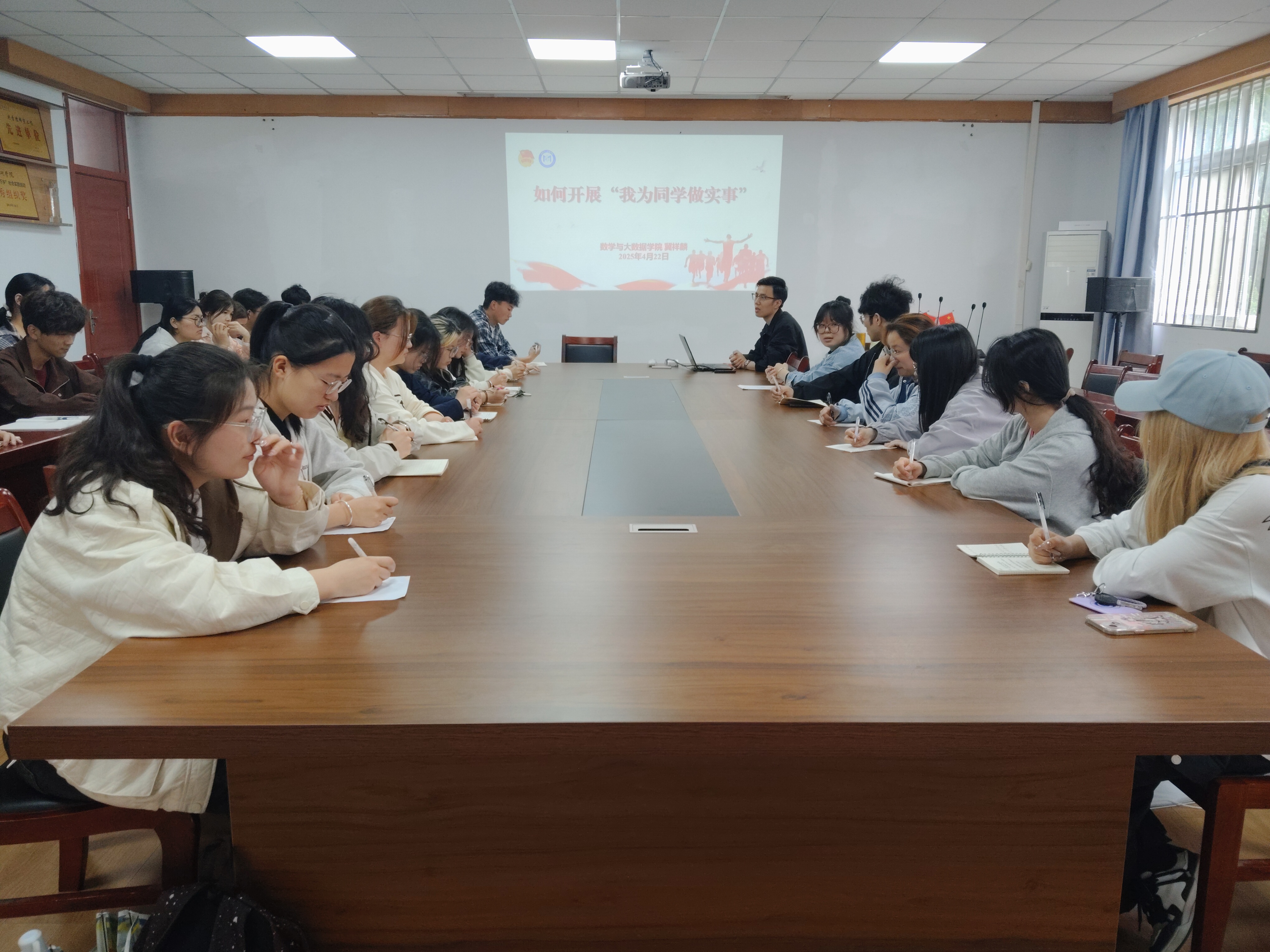 學(xué)院團(tuán)委副書記冀祥麟圍繞“如何開展‘我為同學(xué)做實(shí)事’”這一主題,帶領(lǐng)學(xué)員共同學(xué)習(xí)《學(xué)聯(lián)學(xué)生會(huì)“我為同學(xué)做實(shí)事”項(xiàng)目實(shí)施工作指引》。并結(jié)合精品項(xiàng)目,分享如何科學(xué)有效的打造屬于數(shù)學(xué)與大數(shù)據(jù)學(xué)院的“我為同學(xué)做實(shí)事”品牌項(xiàng)目。讓“我為同學(xué)做實(shí)事”成為學(xué)生會(huì)最鮮明的工作底色,用實(shí)際行動(dòng)詮釋“全心全意為同學(xué)服務(wù)”的宗旨。