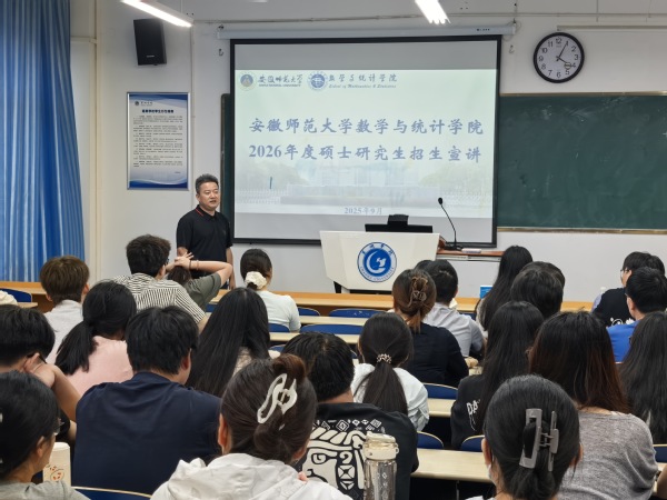 為助力學生明確考研方向、提升備考效率,9月17日下午,數學與大數據學院在博學樓205教室舉辦考研招生宣講暨校友報告會。活動特邀安徽師范大學數學與統計學院專家團隊蒞臨指導,并邀請優秀校友分享經驗,吸引了全院百余名師生參與。