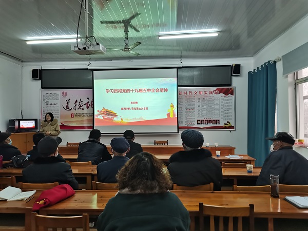 應望城社區黨支部之邀,元月21日,馬克思主義學院夏明群和肖迎春兩位老師為望城社區的黨員、干部和群眾分別作了《戰“疫”大考彰顯中國特色社會主義制度優勢》和《學習貫徹黨的十九屆五中全會精神》的專題講座。