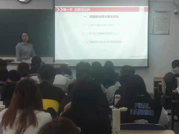 張秀娟老師此次公開課的主題為“實踐的本質”。張秀娟老師在課前依托超星學習通智慧教學平臺,發布馬克思的著作《關于費爾巴哈的提綱》以及康德、黑格爾關于“實踐”的相關原著并組織討論,充分了解學生對“實踐”的理解程度和存在的疑問。課上,針對學生的疑問,張秀娟老師從“二重分化”理論入手,解決了學生關于“為什么說認識來源于實踐”的疑問;其次,通過分析《關于費爾巴哈的提綱》第一條,分別闡述了唯心主義和舊唯物主義實踐觀的缺點,接著引出并重點講解了馬克思主義科學的實踐觀;最后,借助機關“二傳手”的工作和“愚公移山——沙石峪”兩個典型案例,幫助學生厘清科學實踐觀,從而解決了學生關于“作為認識基礎的實踐是什么”的疑問。課后,張秀娟教師布置了相應的學習任務,強化學生對馬克思主義科學實踐觀的理解,并開啟新內容的學習。