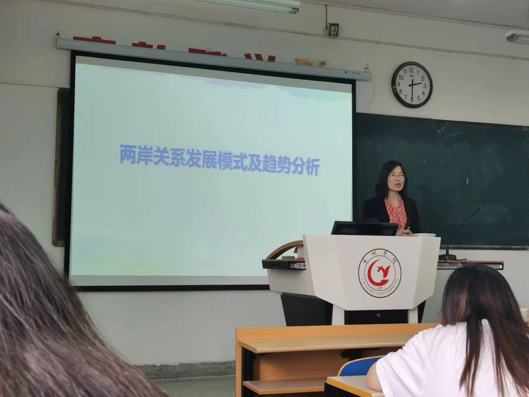 2022年5月20日下午,馬克思主義學院肖迎春老師在博學樓203教室為2021級美術學專業學生作了題為“兩岸關系發展模式及趨勢分析”的主題講座。