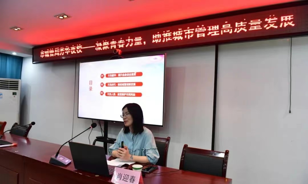 6月21日,應(yīng)巢湖城市管理局邀請,肖迎春老師為城管局“芳華夜校”作了題為《凝聚青春力量 助推城市管理高質(zhì)量發(fā)展——學(xué)習(xí)習(xí)近平總書記關(guān)于青年的重要論述》的專題講座。講座由城管局陶學(xué)勇副局長主持,城管局部分青年干部和巢湖市彩虹社會(huì)工作服務(wù)中心青年員工共40余人聆聽了此次講座。