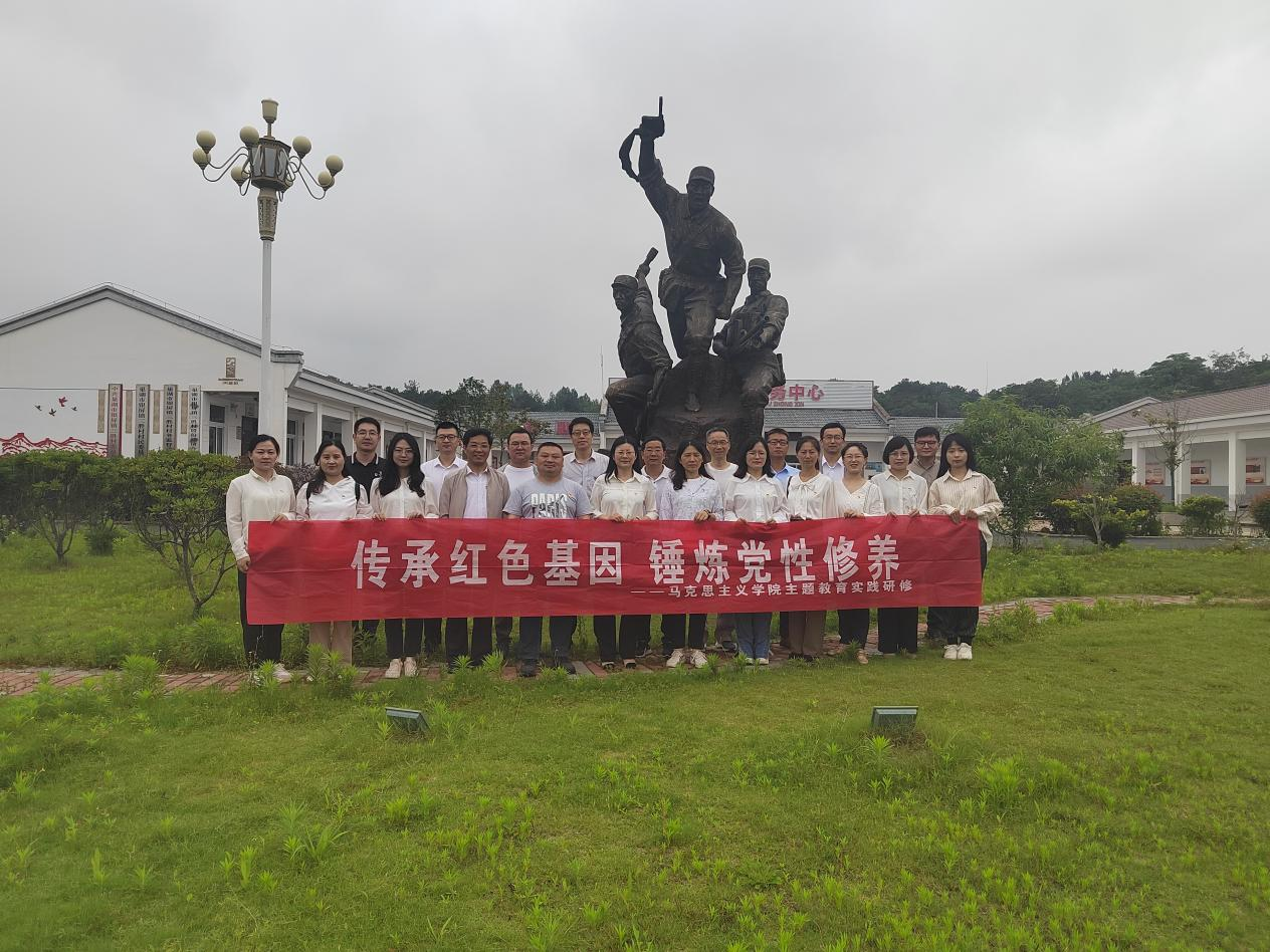 為深入貫徹落實主題教育總體要求,6月6日,馬克思主義學院黨總支組織教師開展錘煉黨性修養主題教育實踐研修活動,先后赴巢湖市銀屏鎮三勝村新四軍東進抗日第一槍紀念館和安徽省鄉村振興示范村——巢湖市散兵鎮大嶺村參觀考察。