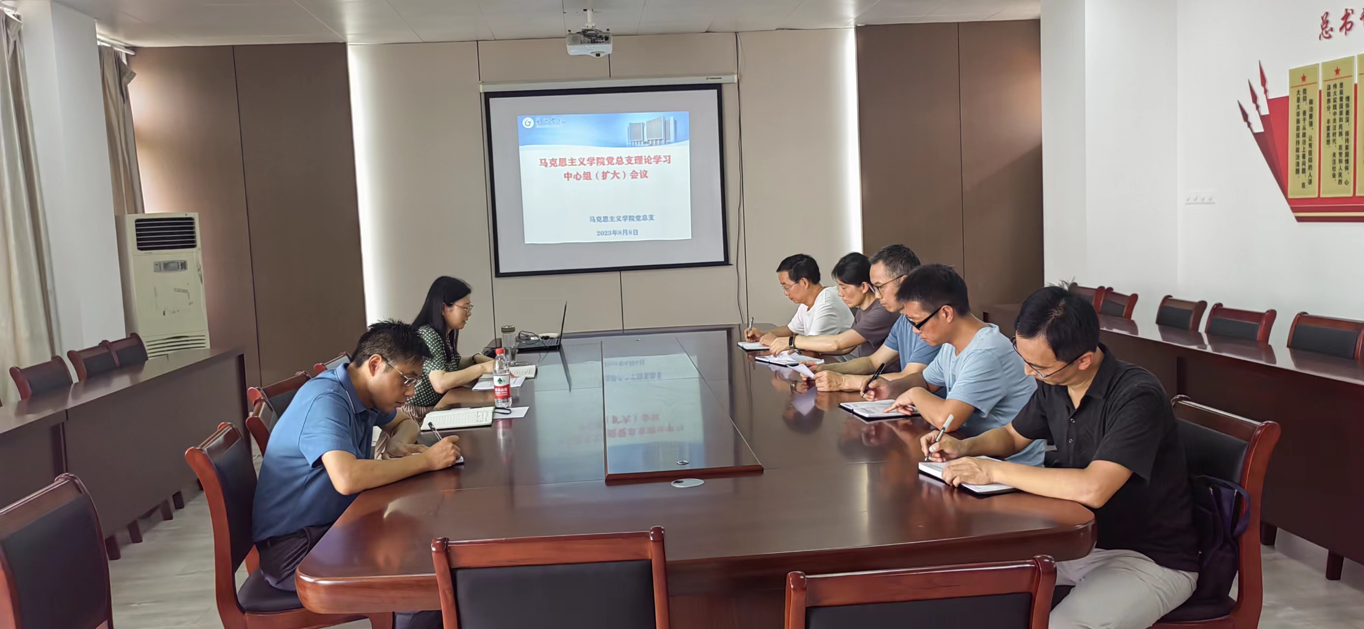 為深入學(xué)習(xí)貫徹習(xí)近平新時(shí)代中國(guó)特色社會(huì)主義思想,不斷健全完善學(xué)院師德師風(fēng)建設(shè)機(jī)制,提升師德師風(fēng)建設(shè)水平,8月8日下午,馬克思主義學(xué)院黨總支在學(xué)院會(huì)議室召開理論學(xué)習(xí)中心組2023年第8次學(xué)習(xí)(擴(kuò)大)會(huì)議,學(xué)院領(lǐng)導(dǎo)班子成員、黨總支委員、黨支部書記、科級(jí)干部出席會(huì)議,黨總支副書記楊芳主持會(huì)議。