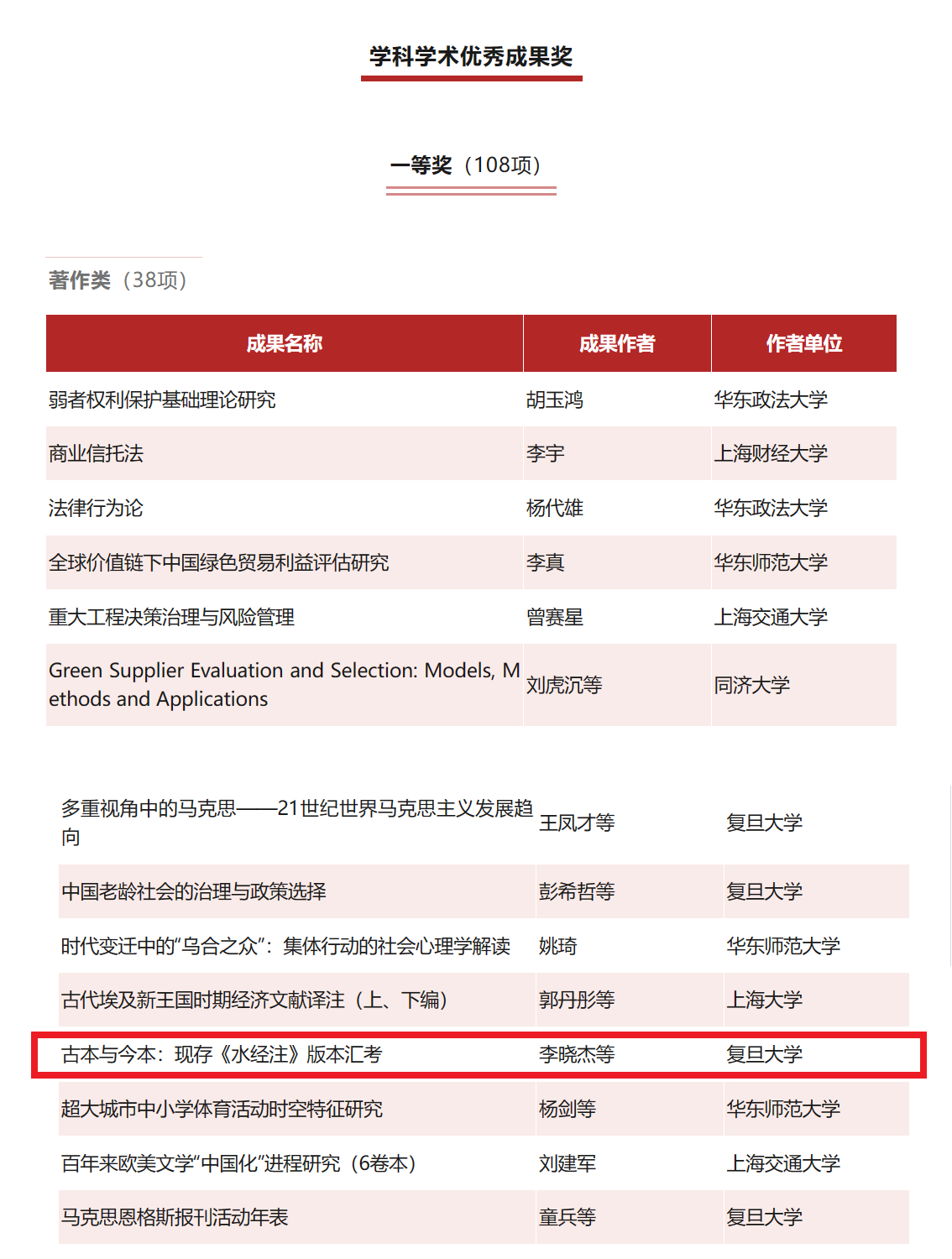 10月13日,上海市哲學社會科學優秀成果評獎委員會辦公室公布《上海市第十六屆哲學社會科學優秀成果獎擬表彰名單公示》,馬克思主義學院屈卡樂博士參與撰寫的學術專著《古本與今本:現存<水經注>版本匯考》(復旦大學出版社,2021年)榮獲上海市第十六屆哲學社會科學優秀成果獎一等獎(排名第四)。