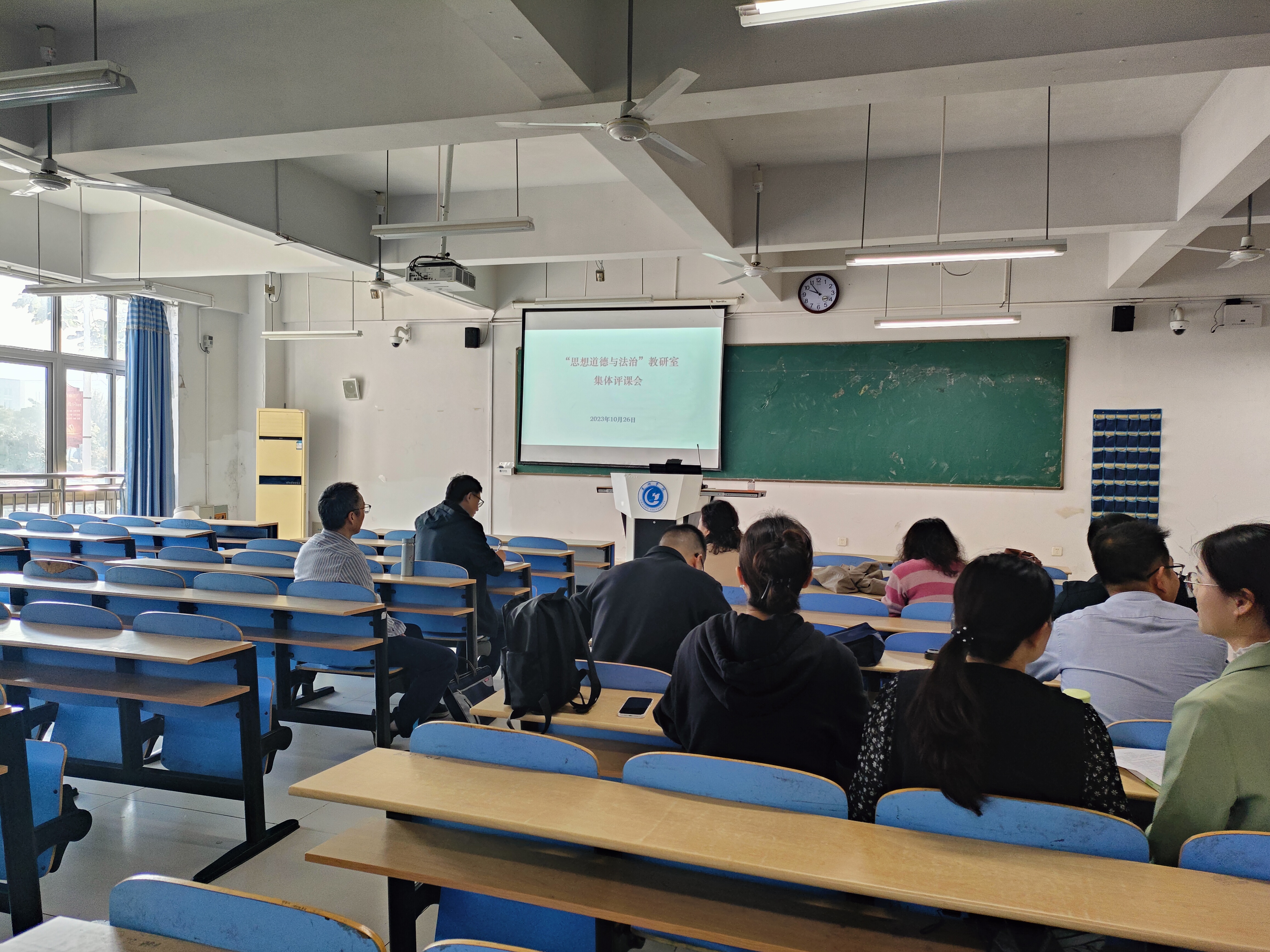 為貫徹落實“思想道德與法治”教研室本學期工作計劃,進一步提升思政課教學效果,10月26日上午,“思想道德與法治”教研室12位授課教師在慎思樓北101教室觀摩賈紹俊老師的教學公開課,課后又在慎思樓中101教室開展集體評課活動。