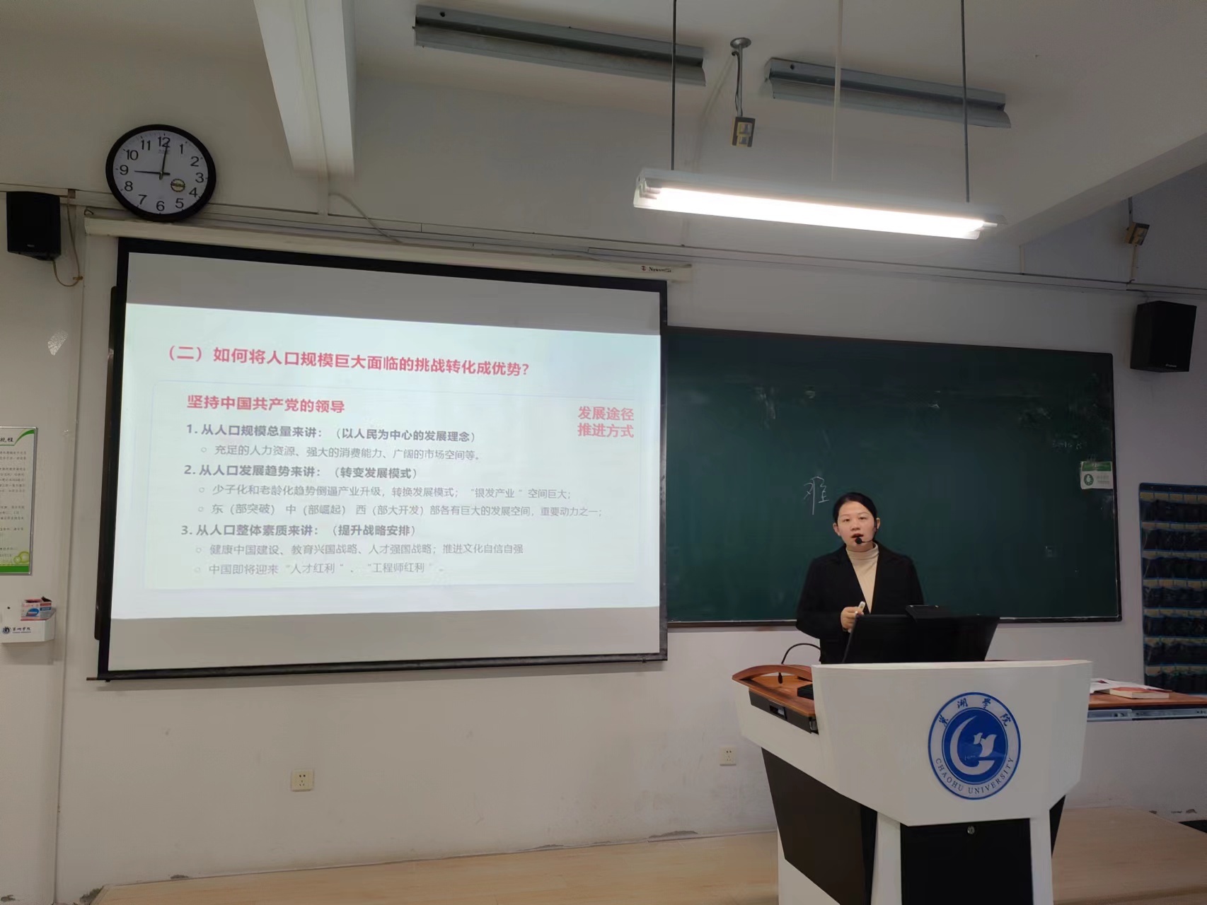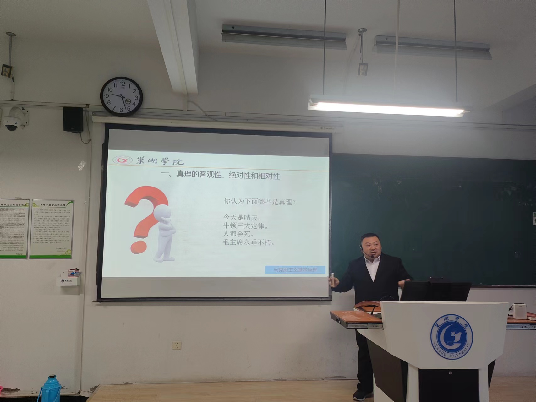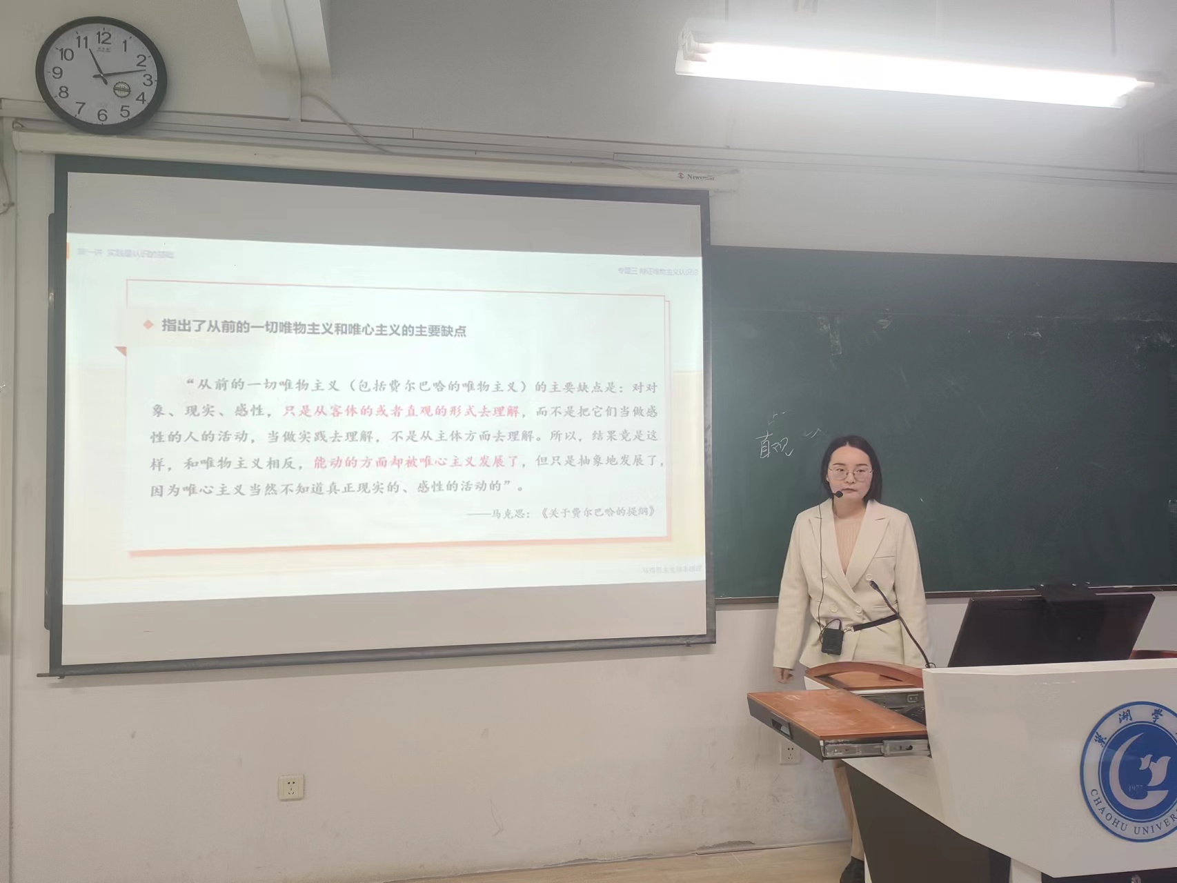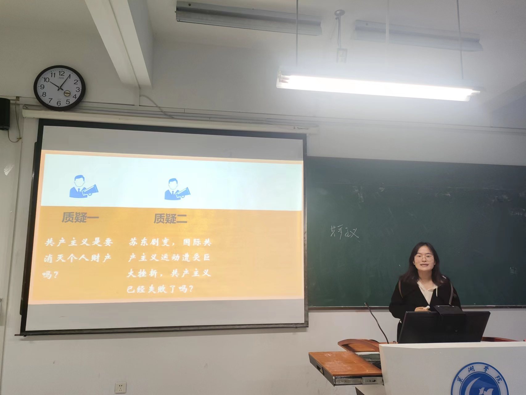 9位青年教師分別選取了“習近平新時代中國特色社會主義思想概論”“馬克思主義基本原理”“中國近現代史綱要”“思想道德與法治”課程的教學內容進行講授,其中丁貝貝老師講授專題“中國式現代化是人口規模巨大的現代化”,宋玉荃老師講授專題“中國共產黨為什么能贏得解放戰爭的勝利”,付加佳老師講授專題“如何理解馬克思主義的科學性”,王海燕老師講授專題“共產主義的科學內涵”,吳卿老師講授專題“真理的客觀性、絕對性、相對性”,王靜老師講授專題“做新時代忠誠的愛國者”,姚鈺婷老師講授專題“英雄是民族最閃亮的坐標”,張秀娟老師講授專題“實踐的本質”,張智慧老師講授專題“樹立正確的馬克思主義婚戀觀”。青年教師們精神飽滿,各顯風采,通過思路清晰的教學理念和富有特色的教學組織形式,啟迪學生思維,充分展示了扎實的專業基礎和教學功底。