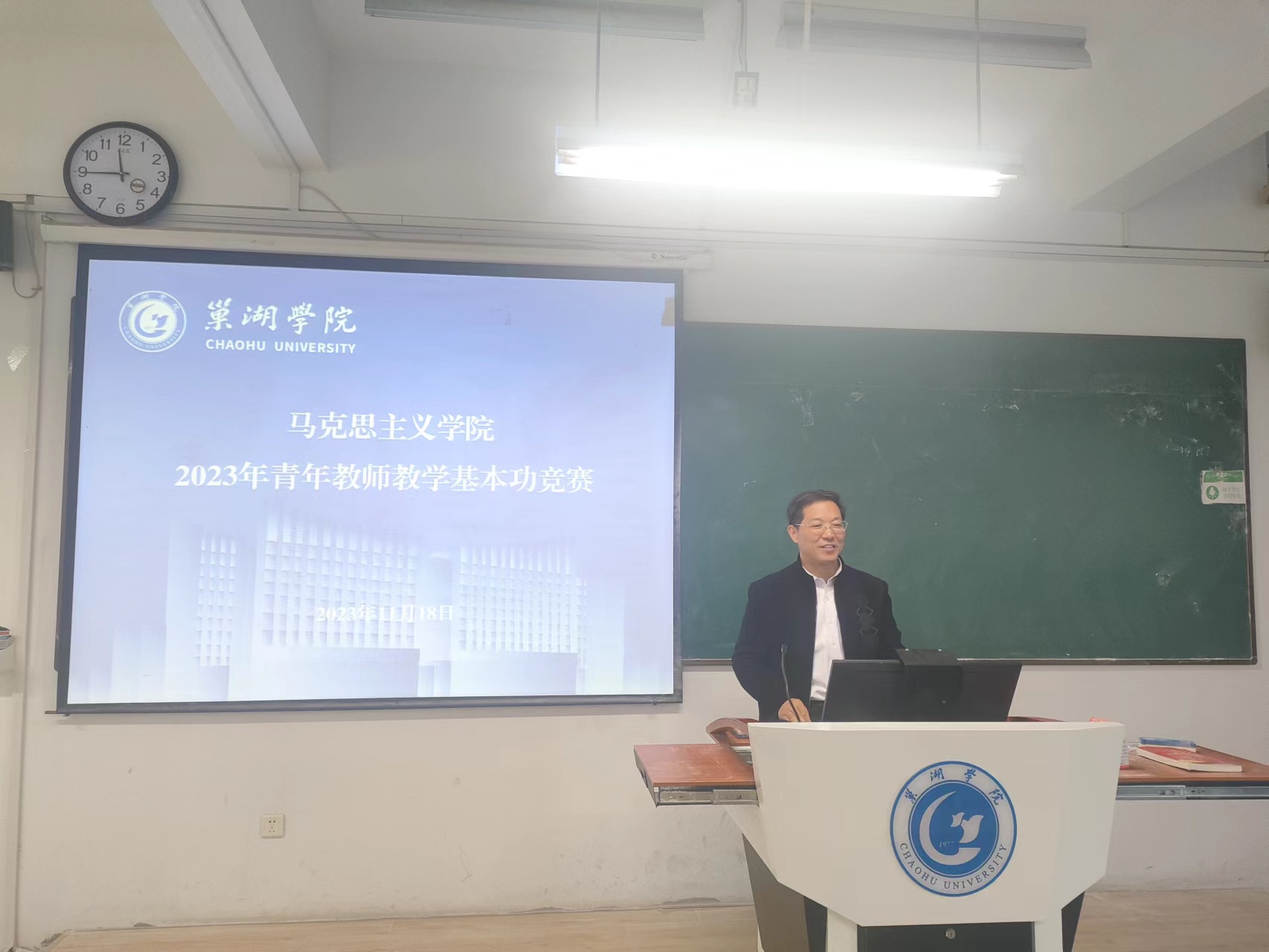 為提升思政課教師的教學能力和專業素養,進一步促進教育教學質量的提高,落實教務處《關于舉辦巢湖學院第十二屆青年教師教學基本功競賽的通知》文件要求,馬克思主義學院于2023年11月18日上午在慎思樓北103教室舉辦了青年教師教學基本功競賽。9名青年教師參加了本次競賽,馬克思主義學院領導班子楊芳、石慶海,校院兩級教學督導簡紅江、過慈明以及“馬克思主義基本原理”教研室主任郭啟貴等5位老師出席并擔任評委。