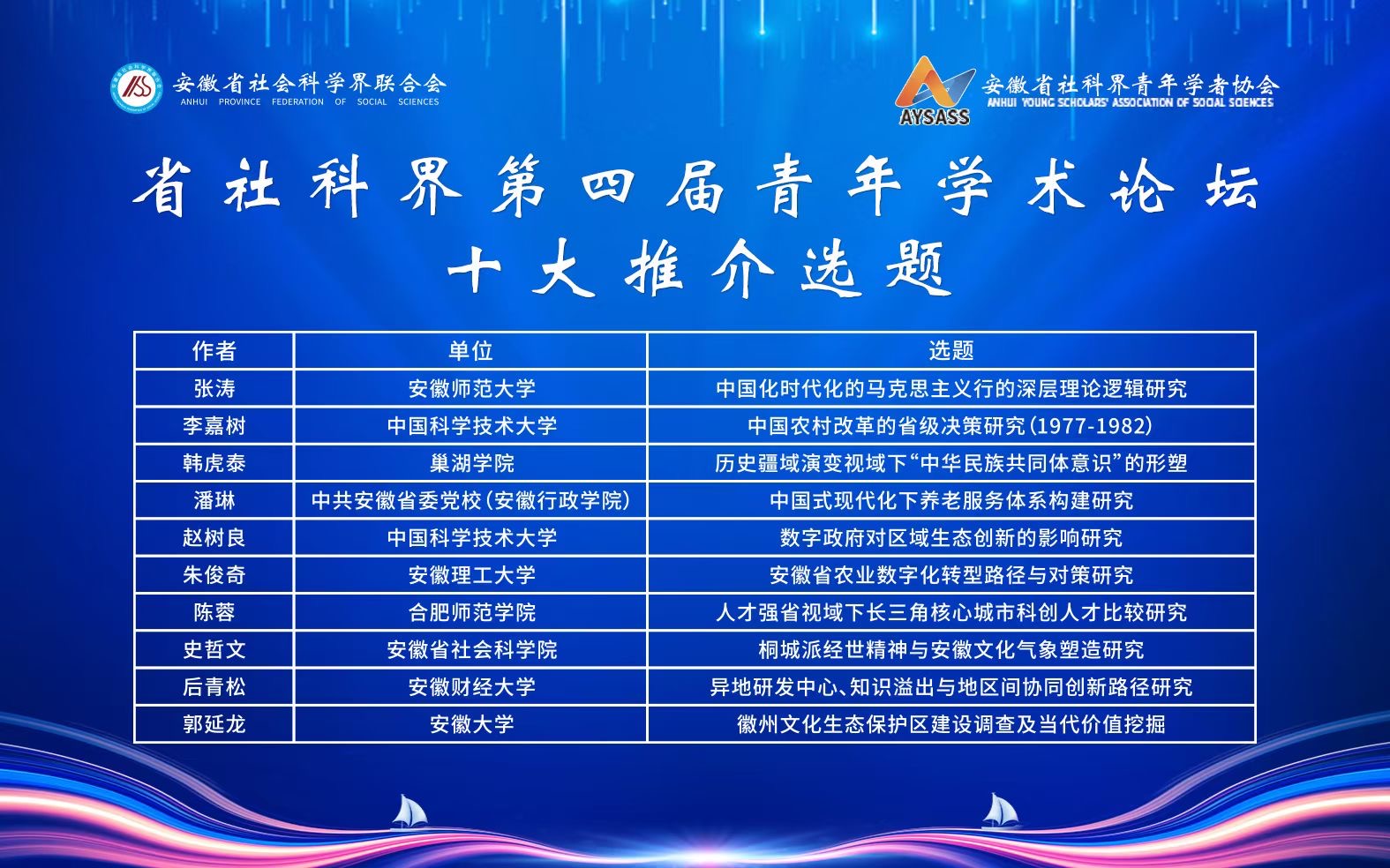 本次大會為安徽省社科界青年學者協(xié)會的成立和發(fā)展奠定了堅實的基礎(chǔ),也為廣大青年學者提供了一個展示研究成果、交流學術(shù)觀點的平臺,對于推動安徽省乃至全國的哲學社會科學繁榮發(fā)展具有積極意義。(文/黃欽 圖/會議主辦方 初審/石慶海 終審/楊芳 發(fā)布/郝成超)