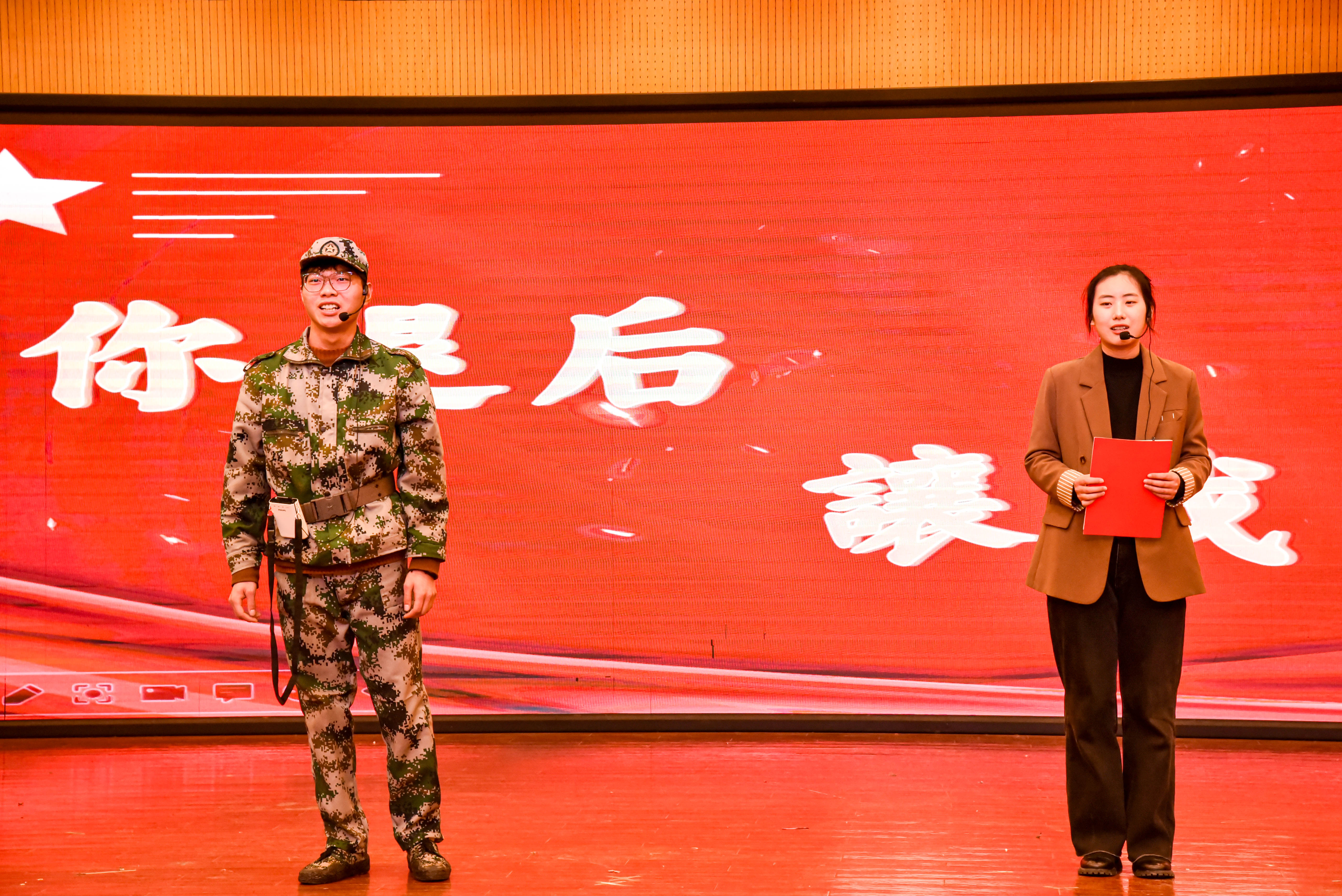 本次大賽面向全校學生,經過初賽、復賽評選,共有12組作品入圍決賽。首先出場的是學前先鋒隊帶來的情景劇誦讀《這十年 青春志》,杜富國、黃文秀、王亞平、龍杰、賈宗洋、劉佳怡……這些時代楷模的壯志豪情被同學們表現得淋漓盡致,催人淚下。之后,各隊選手紛紛登場,演繹了《青春之我》《不朽》《覺醒》《何為青年 青年何為》《不忘初心,銘記黨恩》《習近平與大學生朋友們》《覺醒年代》《百年交響》《風華》《驚蟄》等誦讀作品,用巧妙的構思、飽滿的情緒、鏗鏘的語言和優雅的動作,憶崢嶸歲月,揚紅色經典,帶給觀眾深度的心靈感染和情感共鳴。
