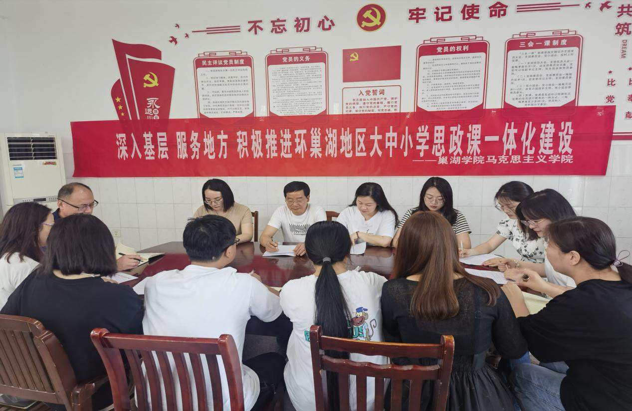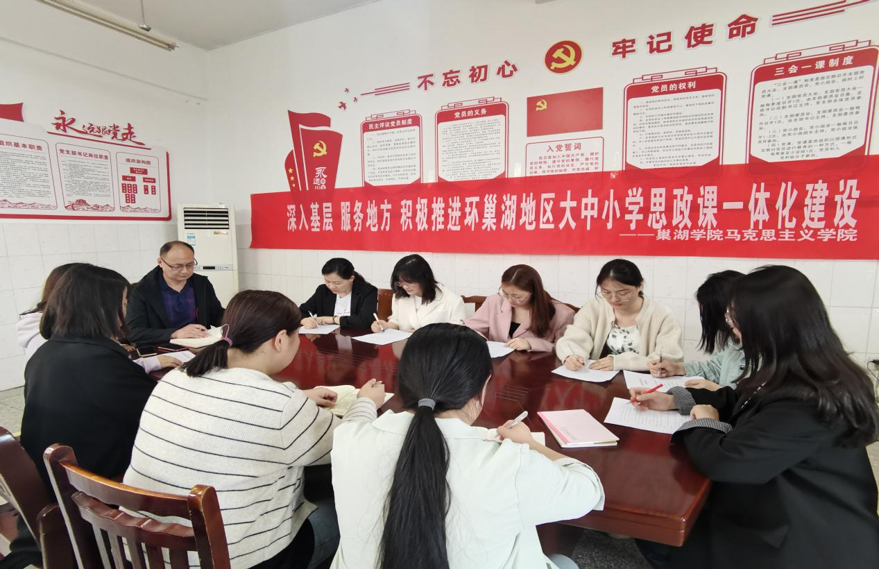 為深入推進環巢湖地區大中小學思政課一體化建設,馬克思主義學院牢固樹立“深入基層,服務地方”的意識,與巢湖市巢揚學校開展思政課共建,雙方簽訂《全面提升巢揚學校辦學水平》合作合同。自項目開展以來,項目組成員以項目建設為抓手,積極作為,群策群力,使得項目進展順利,并取得豐碩成果。