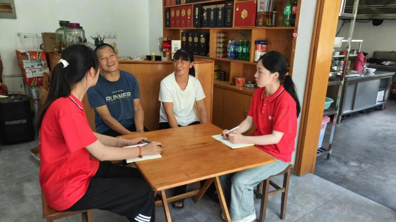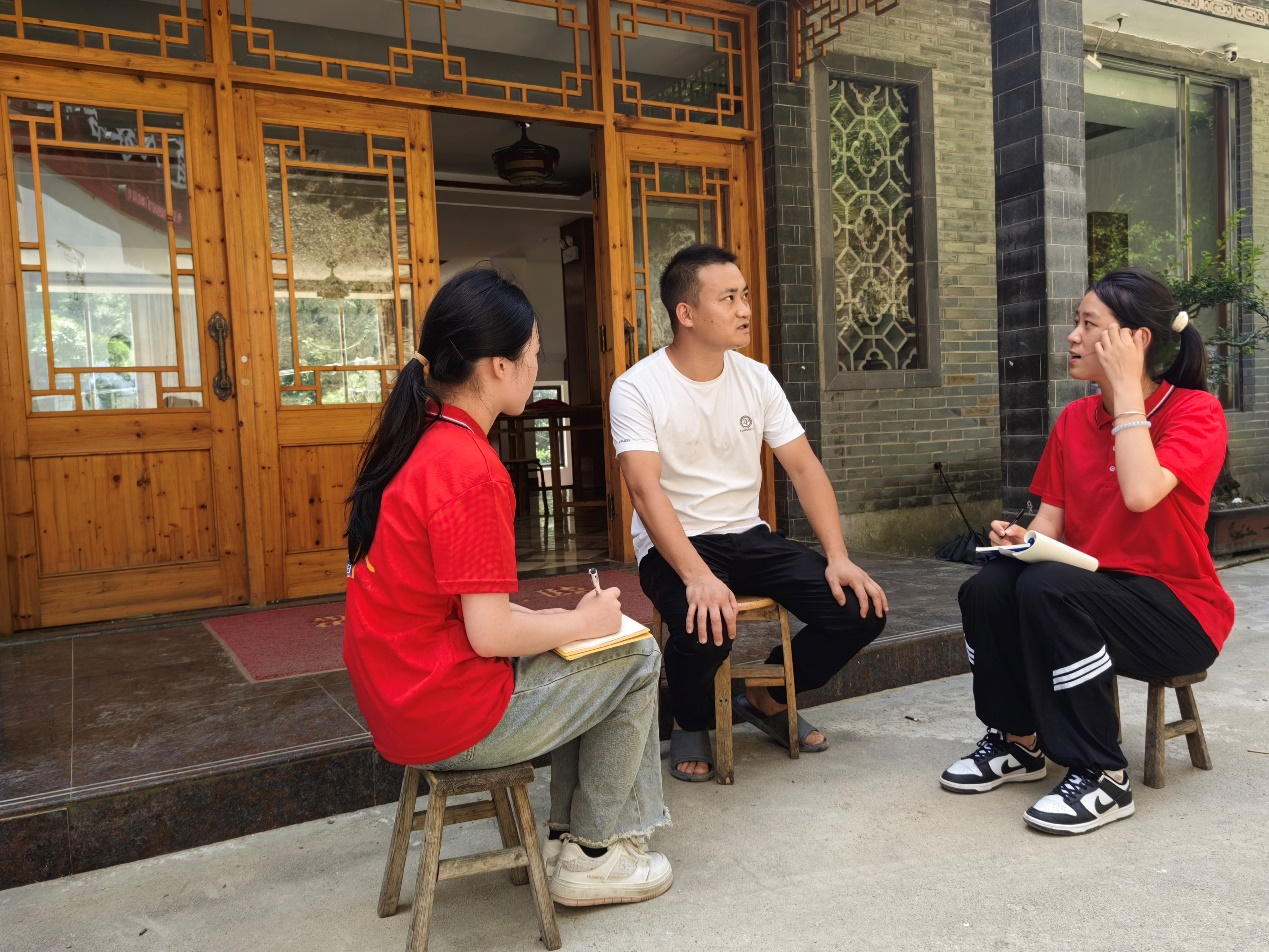 “步道迎賓山間駐,山風招攬客訪來?!币宦废蚯?,調(diào)研團來到黃茅培村一家農(nóng)家樂——步道迎賓閣。在與老板邵光輝和其妻邵水紅的交談中,隊員們了解到這對農(nóng)民夫婦于2012年開始建設(shè)農(nóng)家樂,2014年正式營業(yè)。夫妻二人分工合作,妻子在家做飯,丈夫出門進貨,共同打造了和諧有愛的鄉(xiāng)村生活。農(nóng)家樂通過提供農(nóng)家飯菜、民俗活動、農(nóng)耕體驗等方式,吸引城市居民和游客到農(nóng)村體驗農(nóng)業(yè)生活,感受別樣的鄉(xiāng)村傳統(tǒng)民俗,一年的純利潤近20萬元,收入穩(wěn)定,生活無虞。