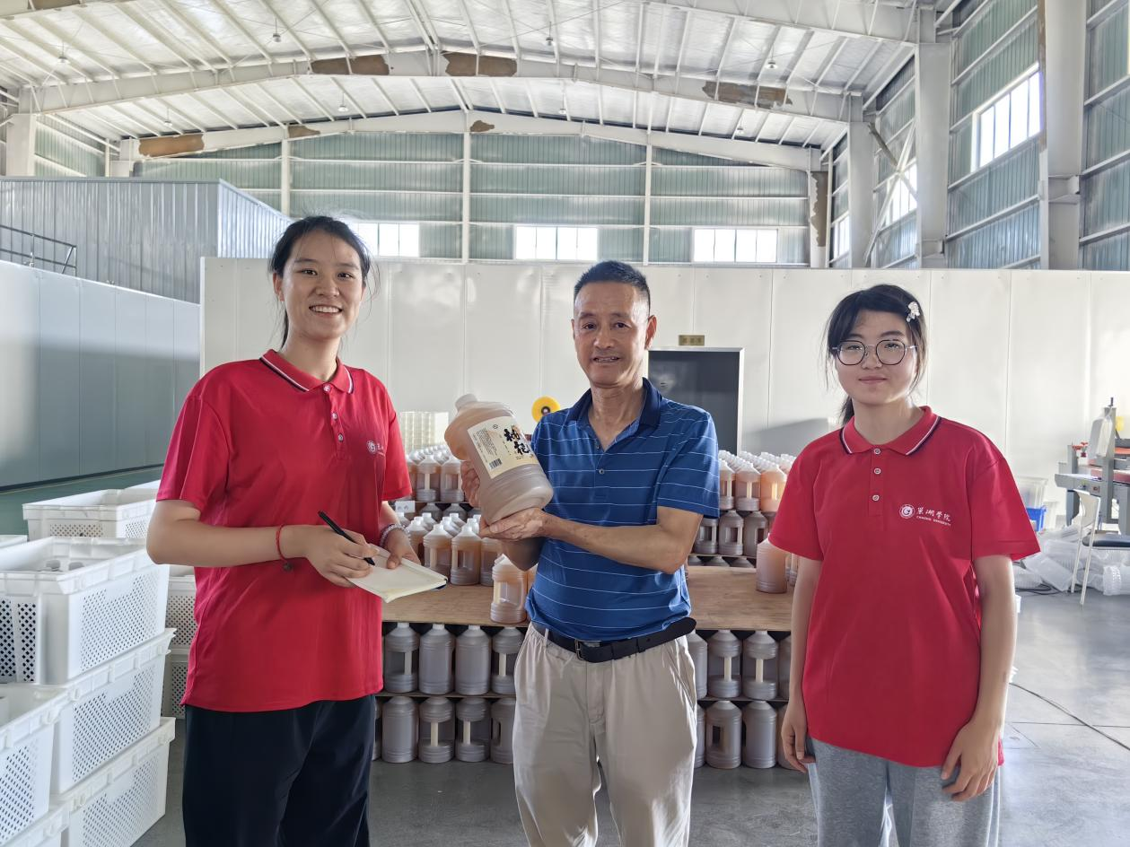 “徽州米酒:古韻新章,匠心釀就的時光佳釀。”徽州古法米酒,歷史悠久,以其獨特的釀造工藝和醇厚口感聞名遐邇。調(diào)研隊員們隨后探訪了華陽鎮(zhèn)萬米農(nóng)業(yè)發(fā)展有限公司,在胡一鳴生產(chǎn)廠長的帶領(lǐng)下,成員們領(lǐng)略到這片古老土地上的傳統(tǒng)米酒文化,見證了徽州古法米酒制作與現(xiàn)代工業(yè)完美結(jié)合的奇跡。在這里,每一滴米酒的誕生,都仿佛是對古老技藝的一次深情回眸,是對傳統(tǒng)智慧的一次崇高致敬。實踐團跟隨著胡廠長的腳步,洞悉了徽州古法米酒的制作過程。從泡米、洗米到蒸飯、糖化、發(fā)酵等工藝流程,跟隨技藝爐火純青的師傅們,我們得以目睹古老技藝的精髓,領(lǐng)悟傳統(tǒng)瑰寶推動產(chǎn)業(yè)振興的現(xiàn)實意義。