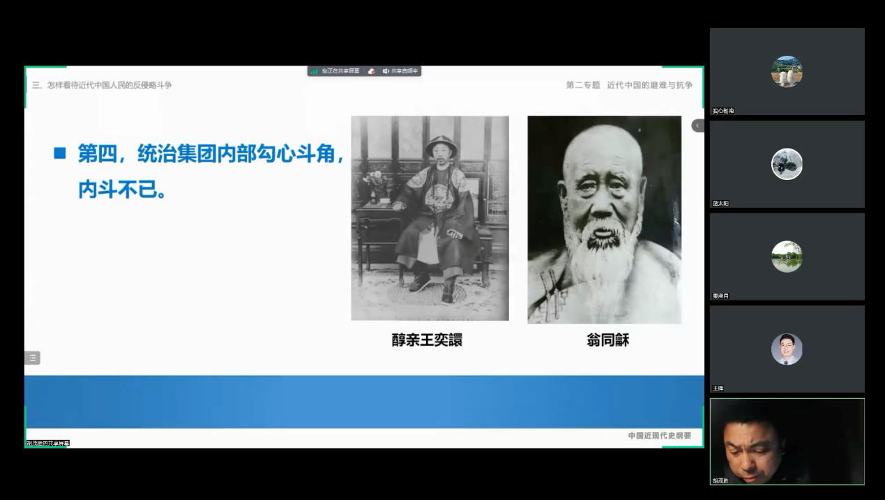 為進一步推進思想政治理論課教學的改革創新,實現思政課教學質量的全面提升,有效提高思政課教師的教學能力和水平,2024年3月3日晚,“綱要”教研室組織本學期第二次“周末話思政”線上集體備課會。此次集體備課圍繞“近代中國的磨難與抗爭——民族復興為什么成為中華民族近代以來最偉大的夢想”這一專題,以及如何利用好教育部統一課件展開教學等方面展開。會議由教研室主任屈卡樂主持,大部分任課教師參加研討。本次備課會通過騰訊會議,以線上視頻方式進行。