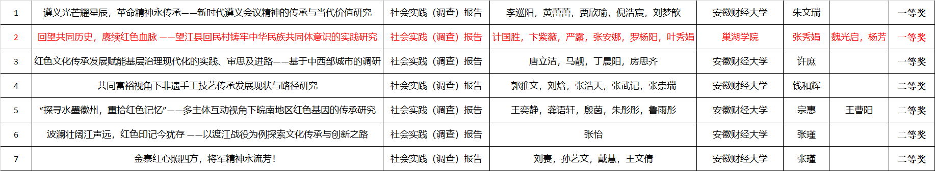 本次大賽獲獎是對巢湖學院學子深入社會實踐學習紅色文化的高度認可,充分展示了巢湖學院在紅色文化教育、創新能力培養以及思政課實踐教學方面的積極探索與顯著成果。巢湖學院將繼續深化教育教學改革,進一步拓展“大思政課”實踐教學的新路徑,推動紅色文化與青年成長深度融合,努力構建更加完善的人才培養體系,為社會輸送更多具備紅色文化底蘊、創新精神和實踐能力的高素質人才,為實現中華民族偉大復興的中國夢貢獻力量。(文、圖/張秀娟 初審/石慶海 終審/楊芳 發布/丁貝貝)