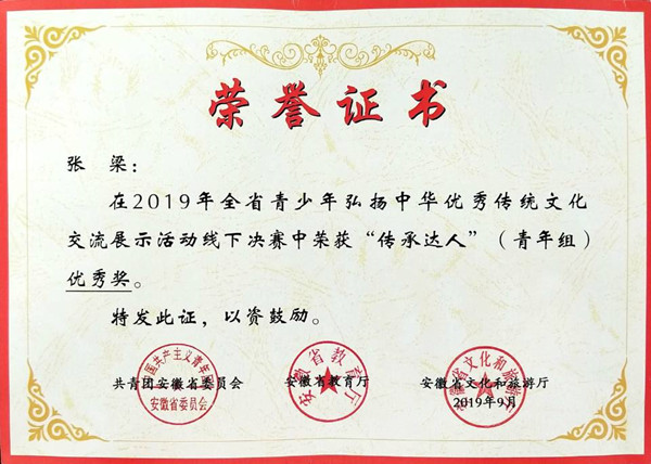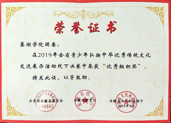 巢湖學院在2019年全省青少年弘揚中華優秀傳統文化交流展示活動線下決賽中榮獲佳績