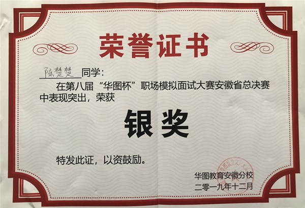 第八屆“華圖杯”職場模擬面試大賽安徽省總決賽榮獲銀獎