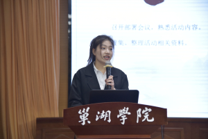 巢湖市青年志愿者協會會長鐘山總結發言,他對各組參賽項目進行詳細點評,并建議同學們在項目實施過程中要注重調研分析、學習培訓和資源整合,圍繞群眾需求開展各項服務。