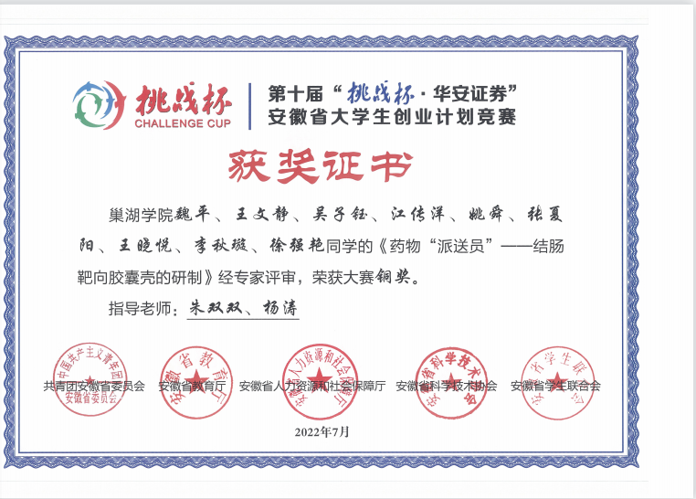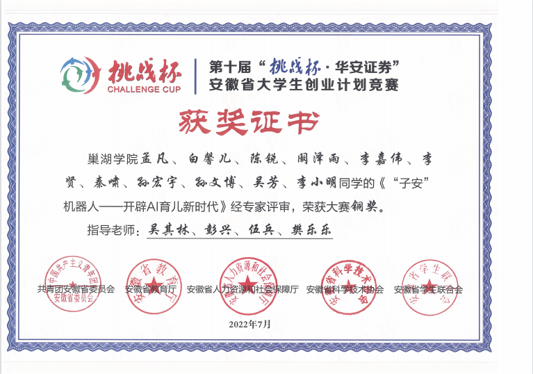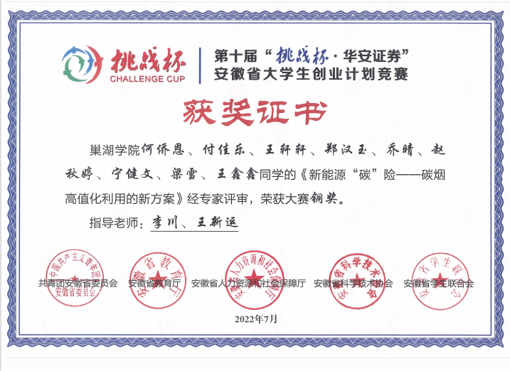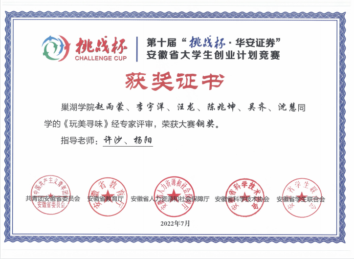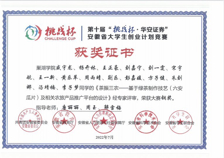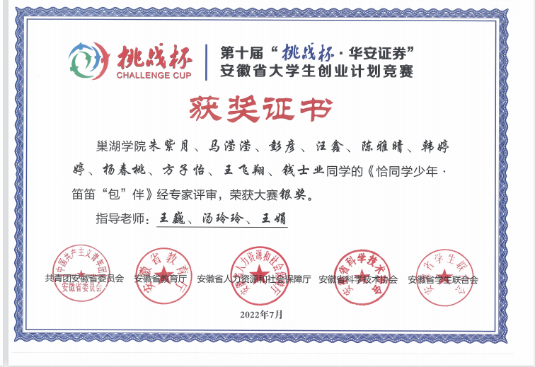 第十屆“挑戰杯 華安證券”安徽省大學生創業計劃競賽