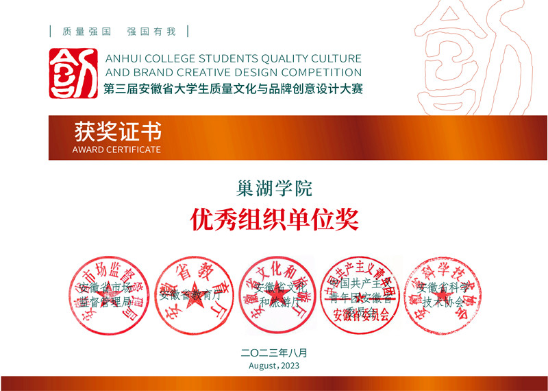 第三屆安徽省大學生質量文化與品牌創意設計大賽優秀組織單位獎