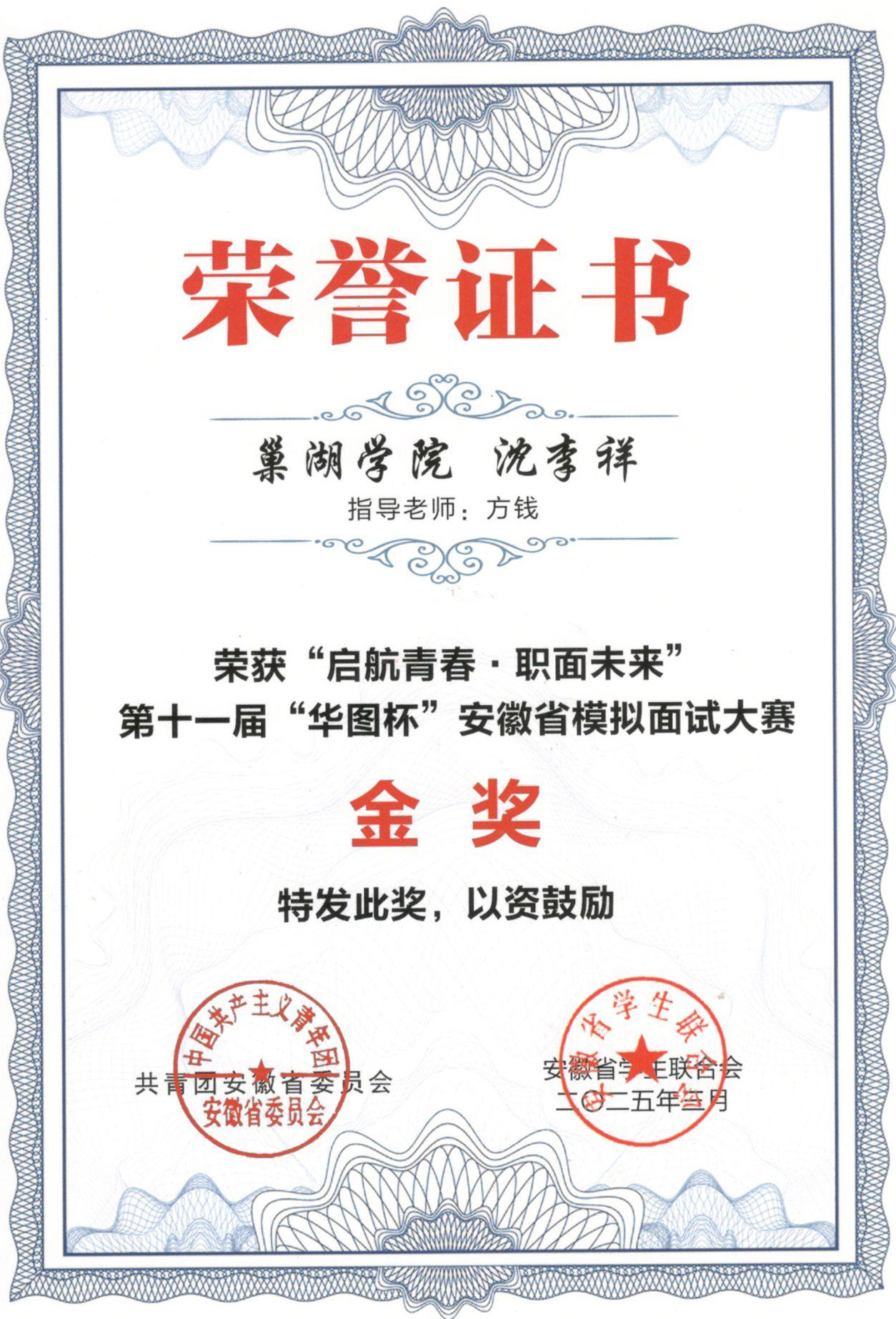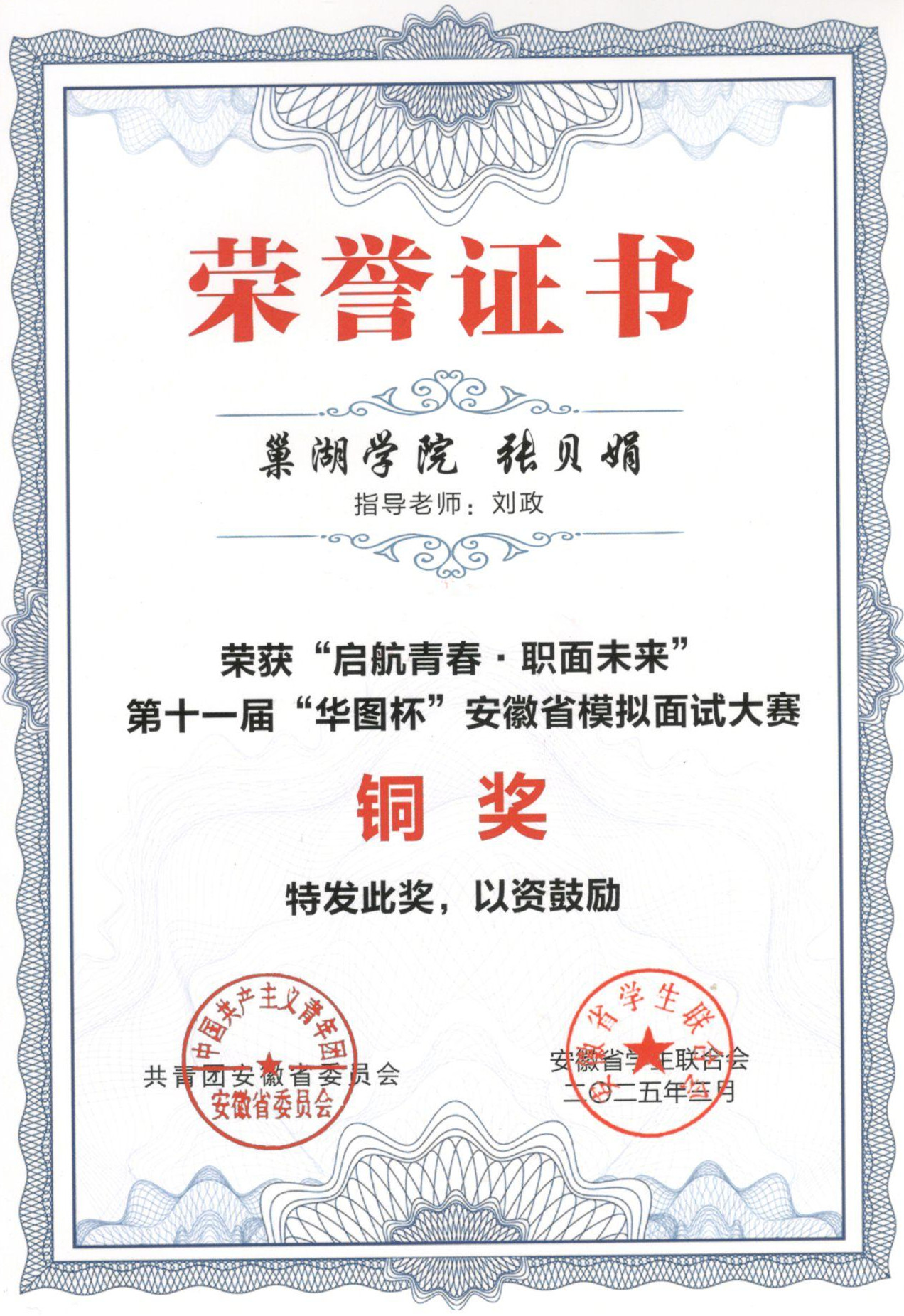 第十一屆“華圖杯”安徽省模擬面試大賽榮譽證書