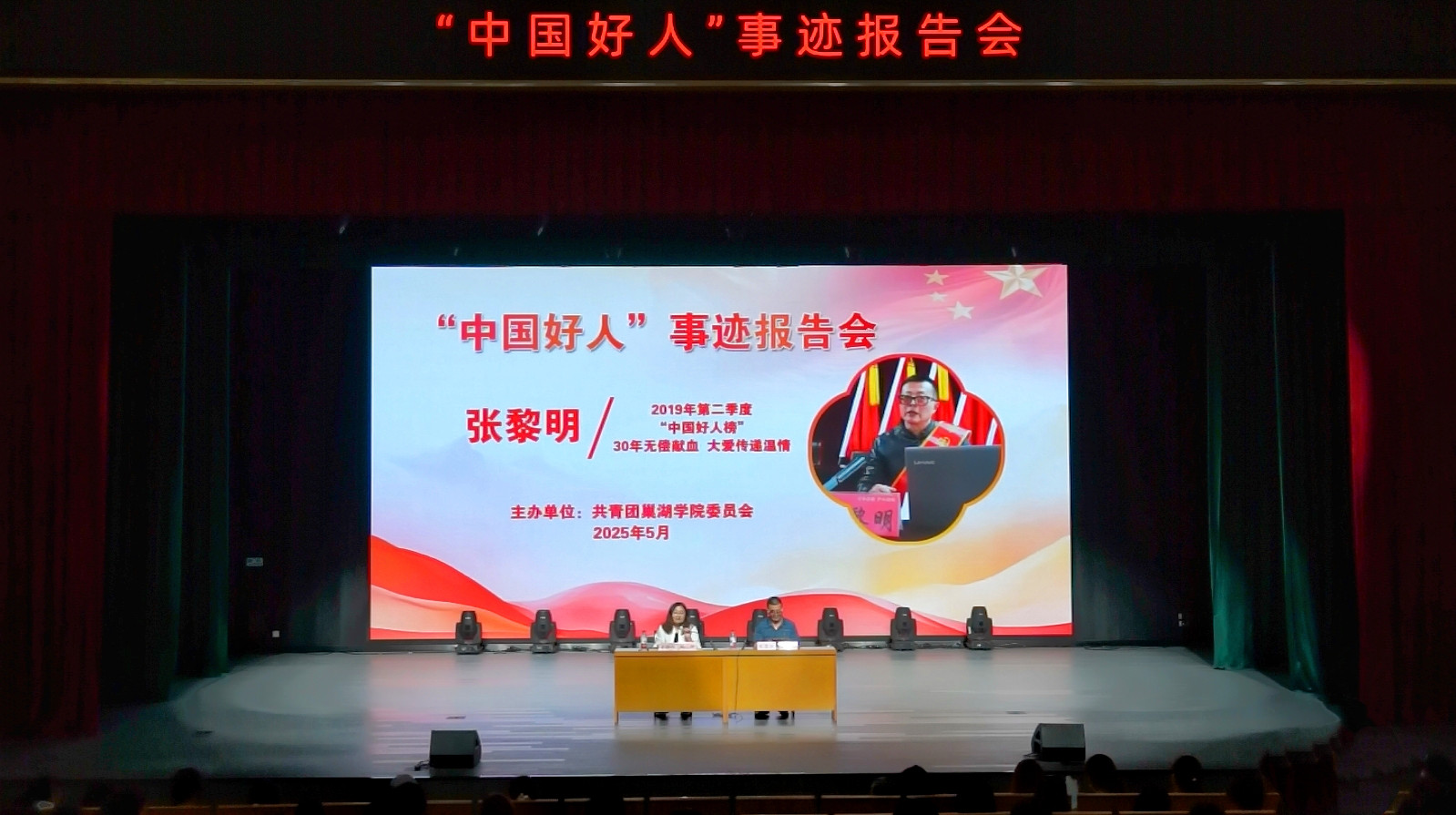 5月14日下午,巢湖學院在校大禮堂舉辦“中國好人”先進事跡報告會。邀請“中國好人”“全國無償獻血奉獻獎金獎”“全國無償獻血特別促進獎”獲得者安徽省第十一屆人大代表、巢湖市城南綜合門診部中醫主治醫師張黎明為第十九期“青馬工程”培訓班、《習近平與大學生朋友們》第二卷讀書班全體學員及各學院學生代表800余人作專題報告。報告會由校團委書記王倩主持。